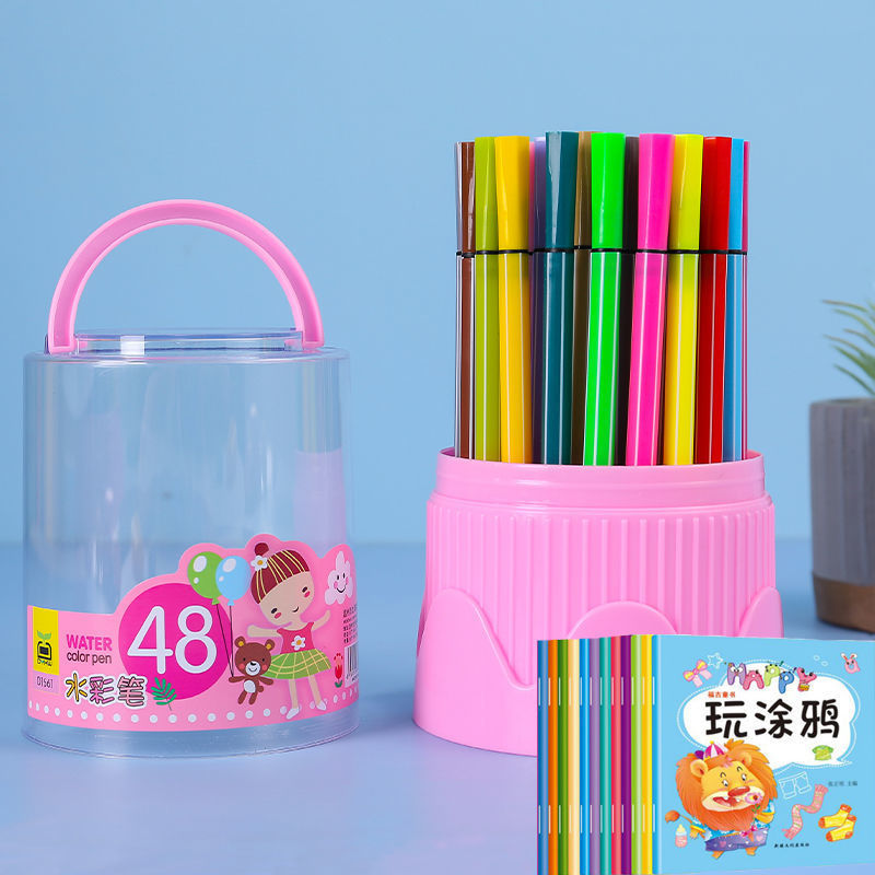 어린이 수채화 펜 유치원 특수 그림 브러시 무독성 세척 가능 초등학생 선물 컬러 펜 12 색 48 색
