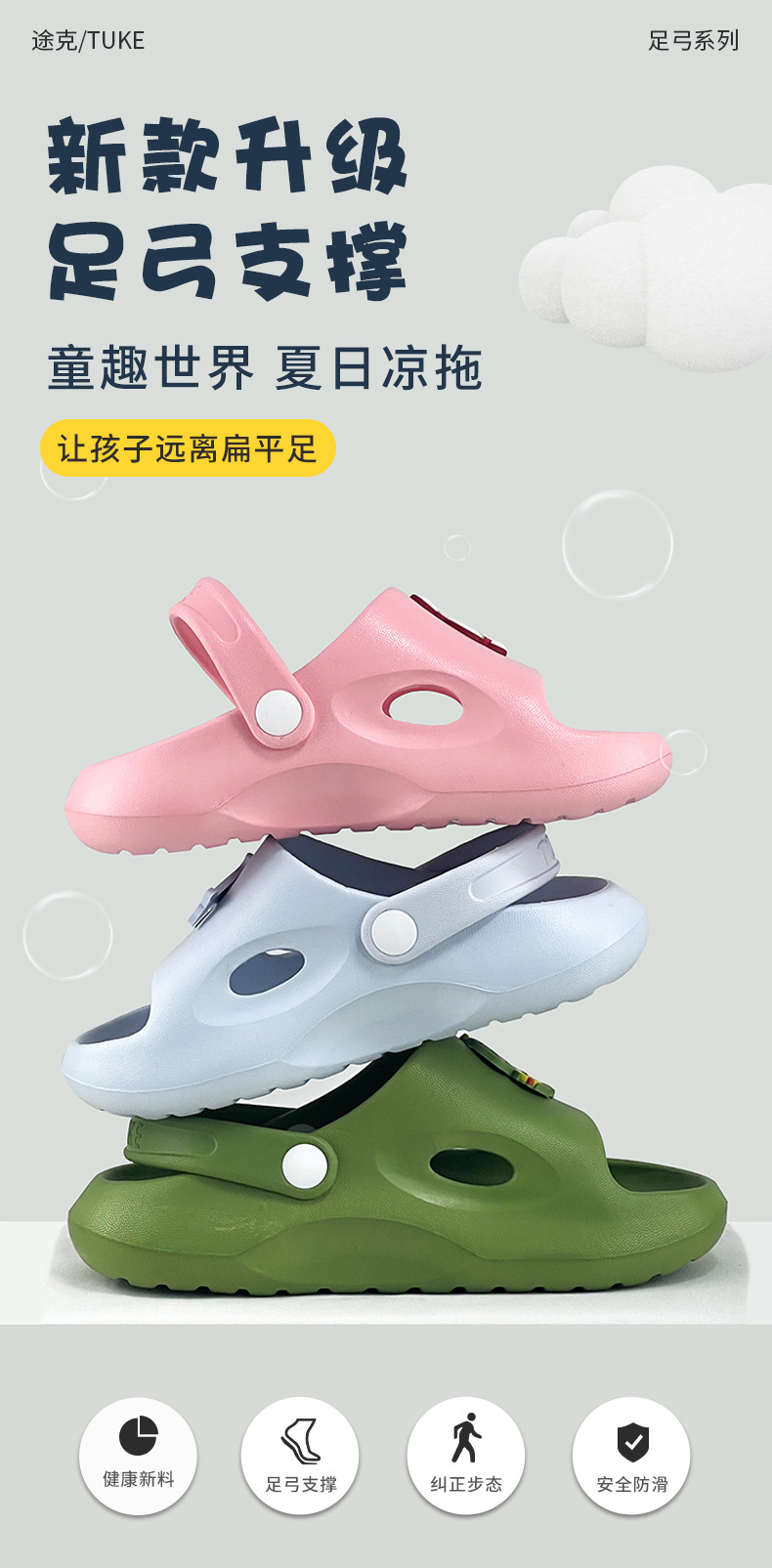 평발 어린이 아치 지지 슬리퍼, 특수 EVA 두꺼운 밑창, 미끄럼 방지, 냄새 방지 겸용 샌들 및 비치 슈즈