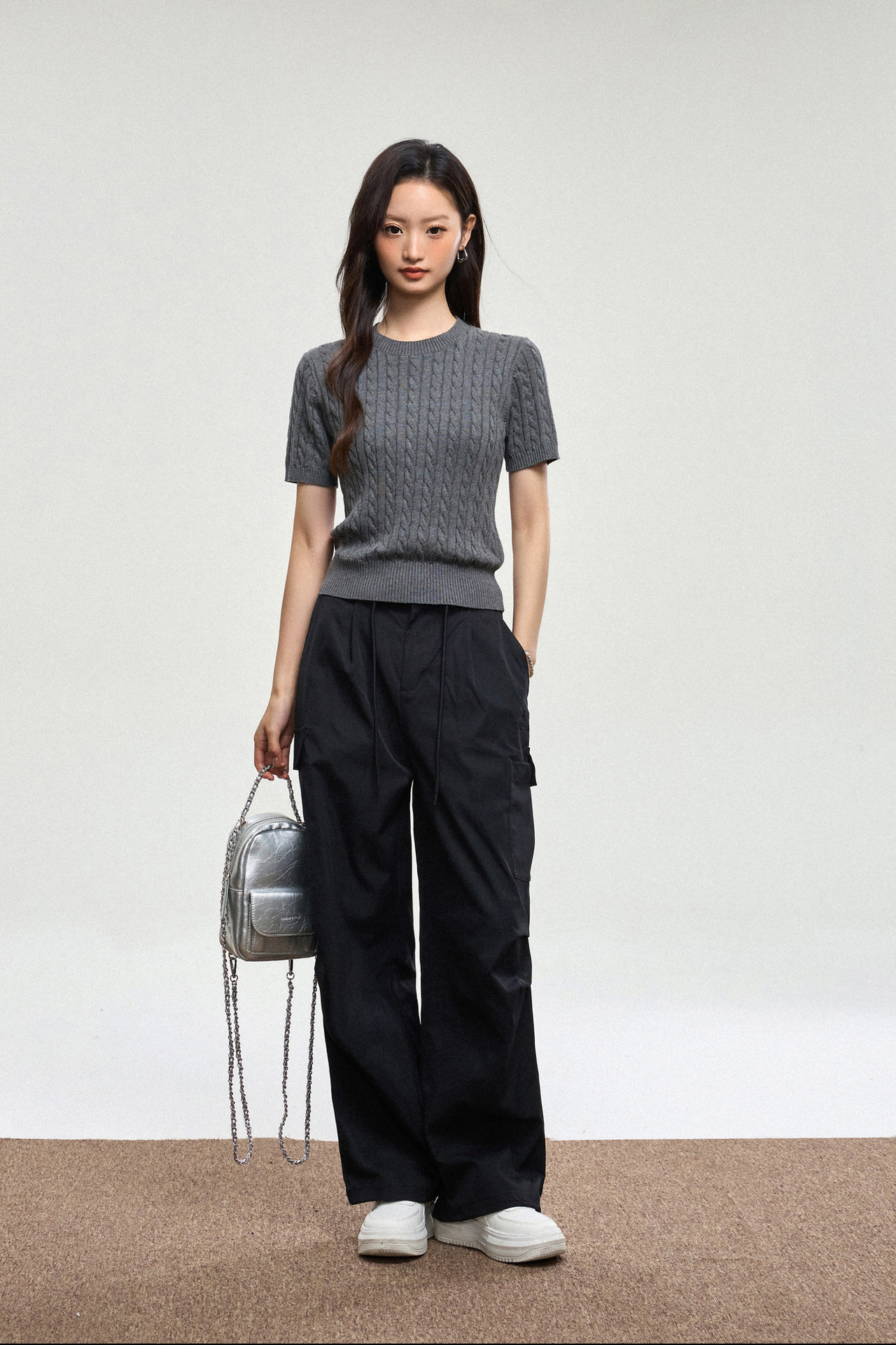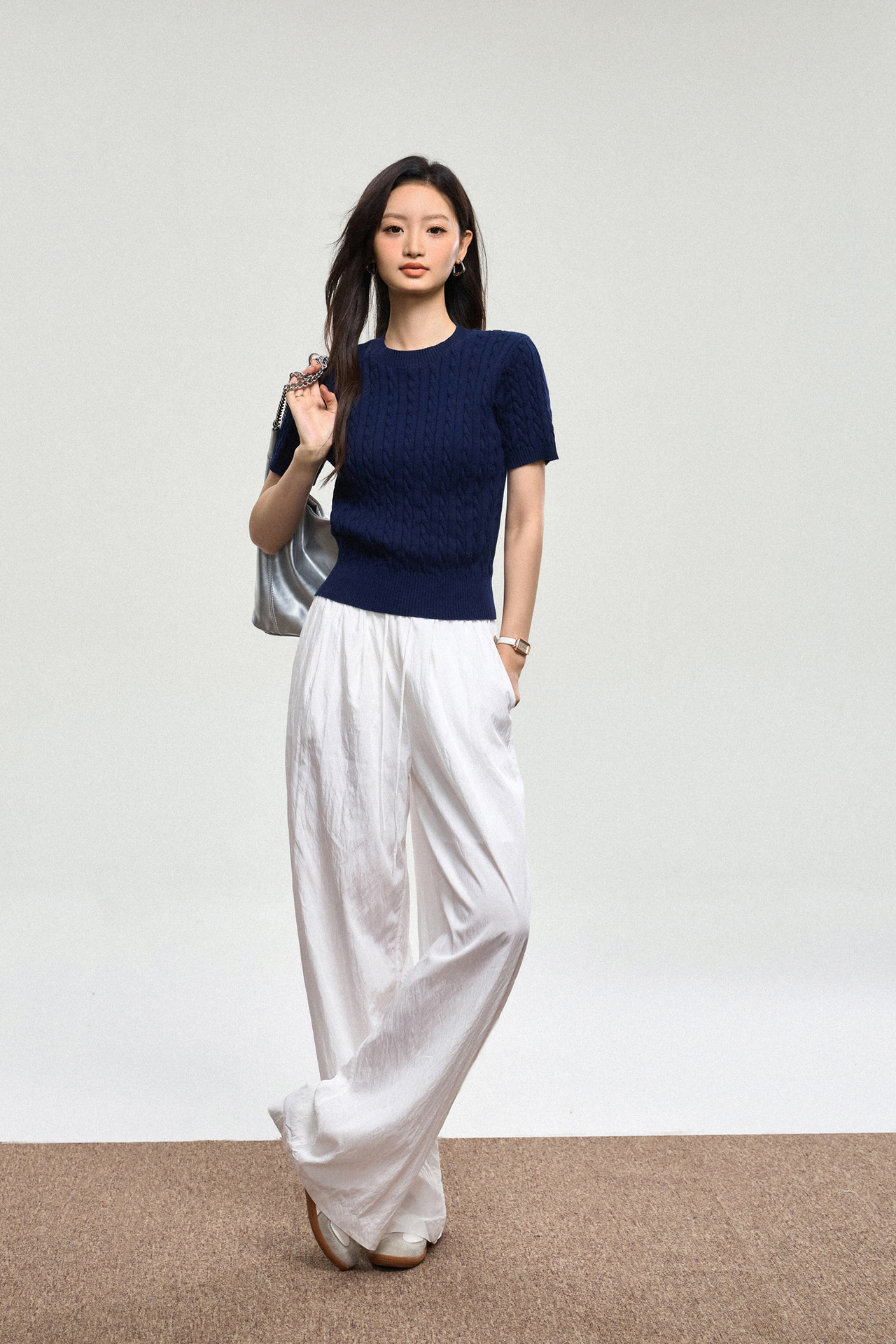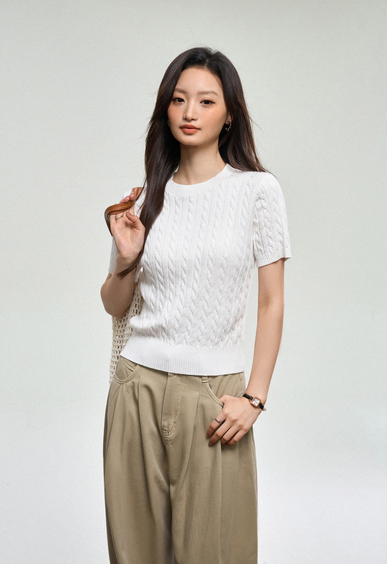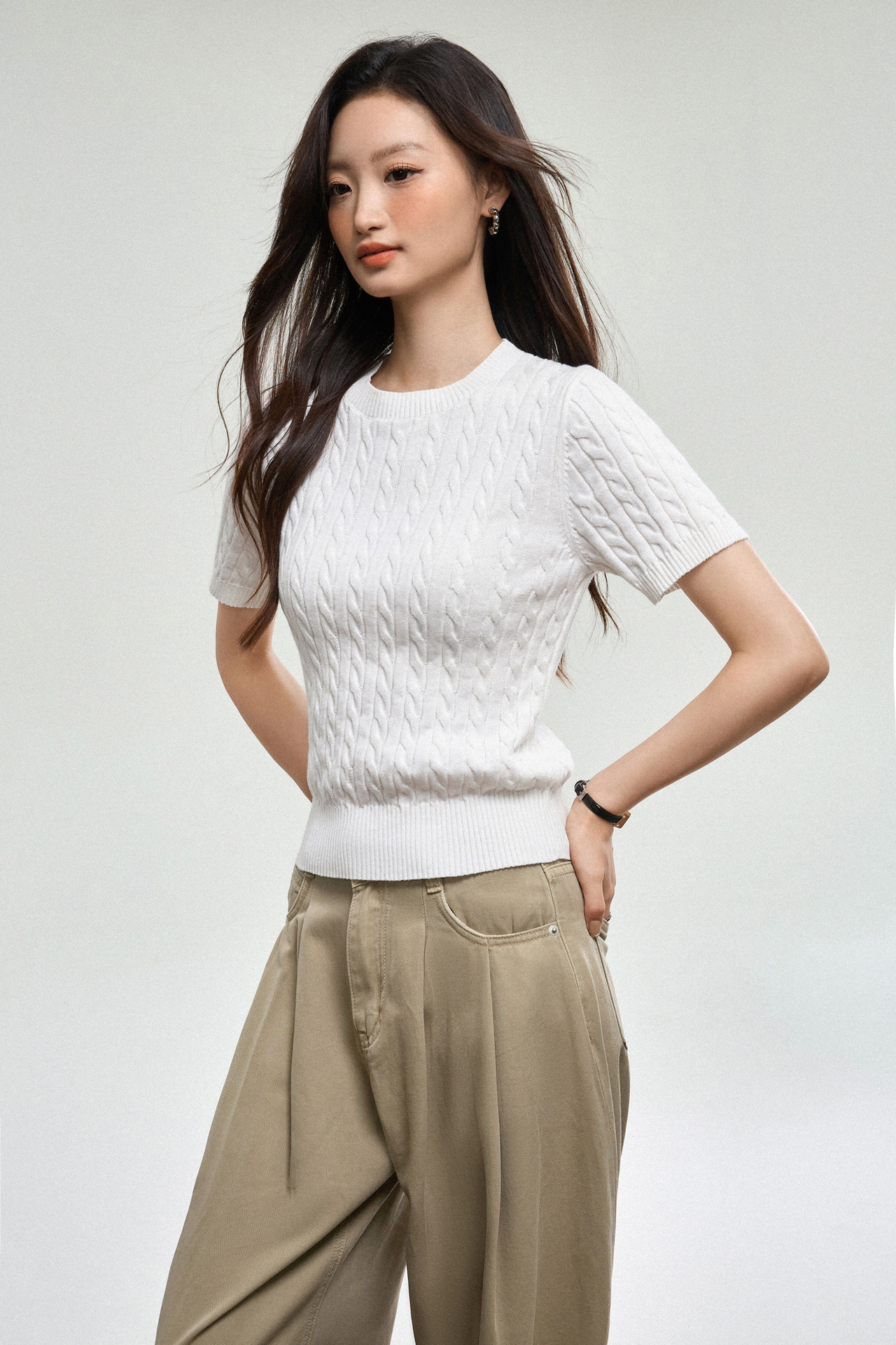여성을위한 100% 면 스웨터 여름 새로운 스타일 고급 슬리밍 트위스트 슬리밍 반팔 라운드 넥 탑 얇은 스타일