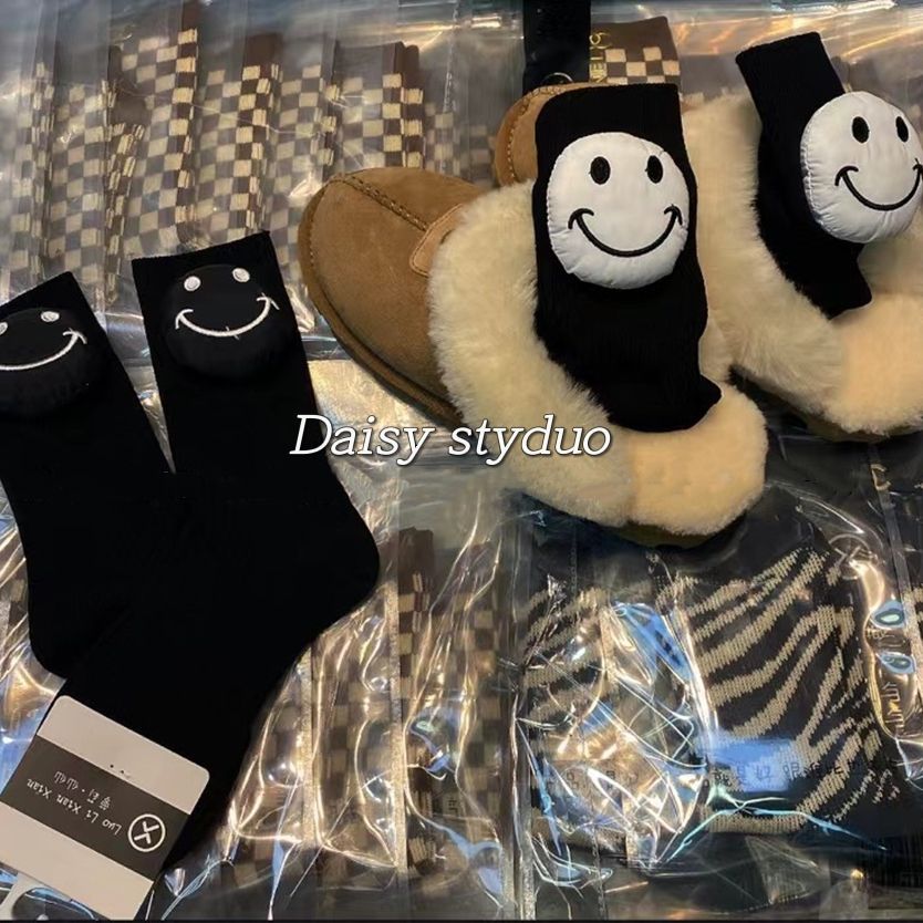 미드 튜브 양말 가을 겨울 웃는 얼굴 장식 양말 흑백 작은 향기 스타일 ins 한국어 버전 인터넷 연예인 Douyin Xiaohongshu 긴 양말 맞춤형