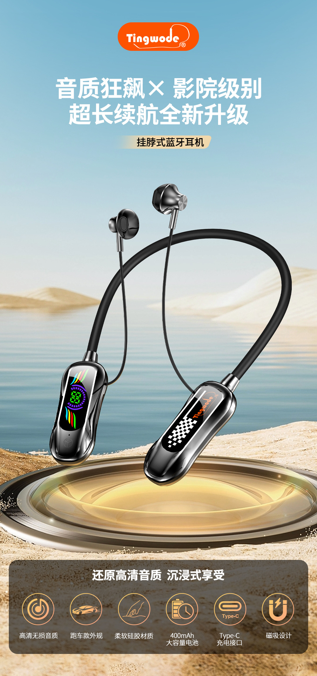 뜨거운 판매 목 장착형 헤드폰 국경 간 새로운 고품질 편안한 착용 슈퍼 긴 배터리 수명 스포츠 목 장착형 블루투스 헤드폰스토어 가기