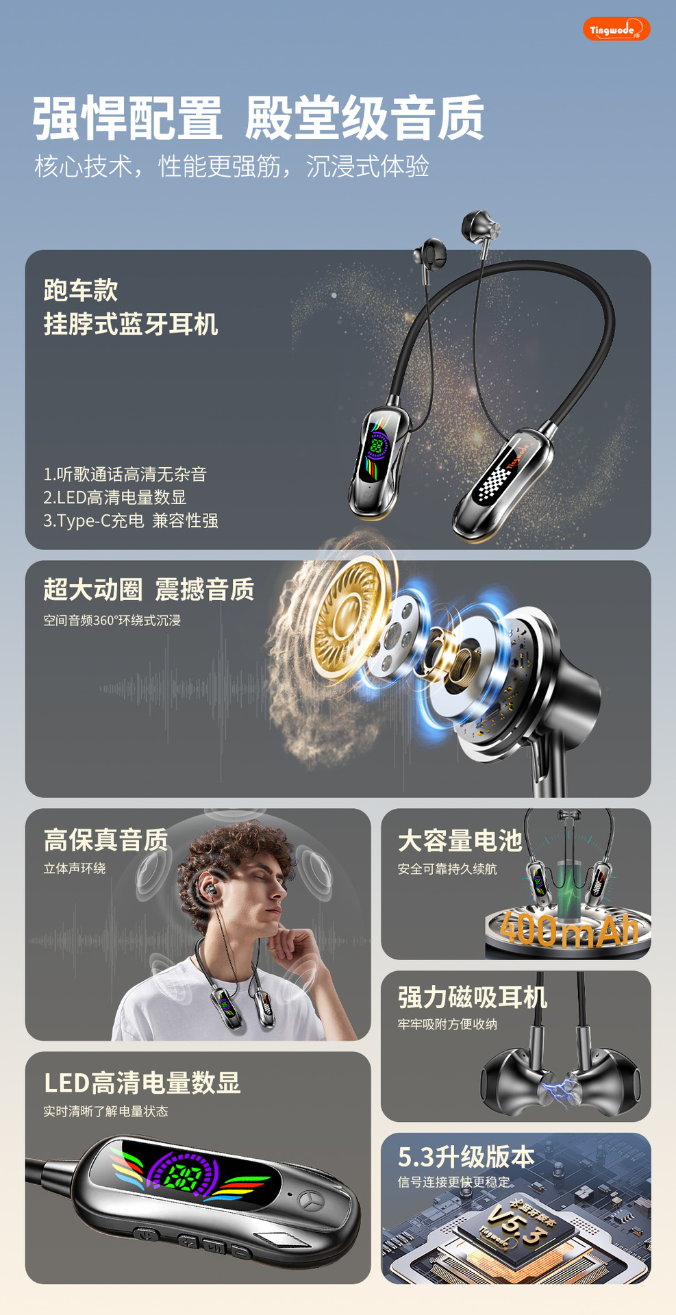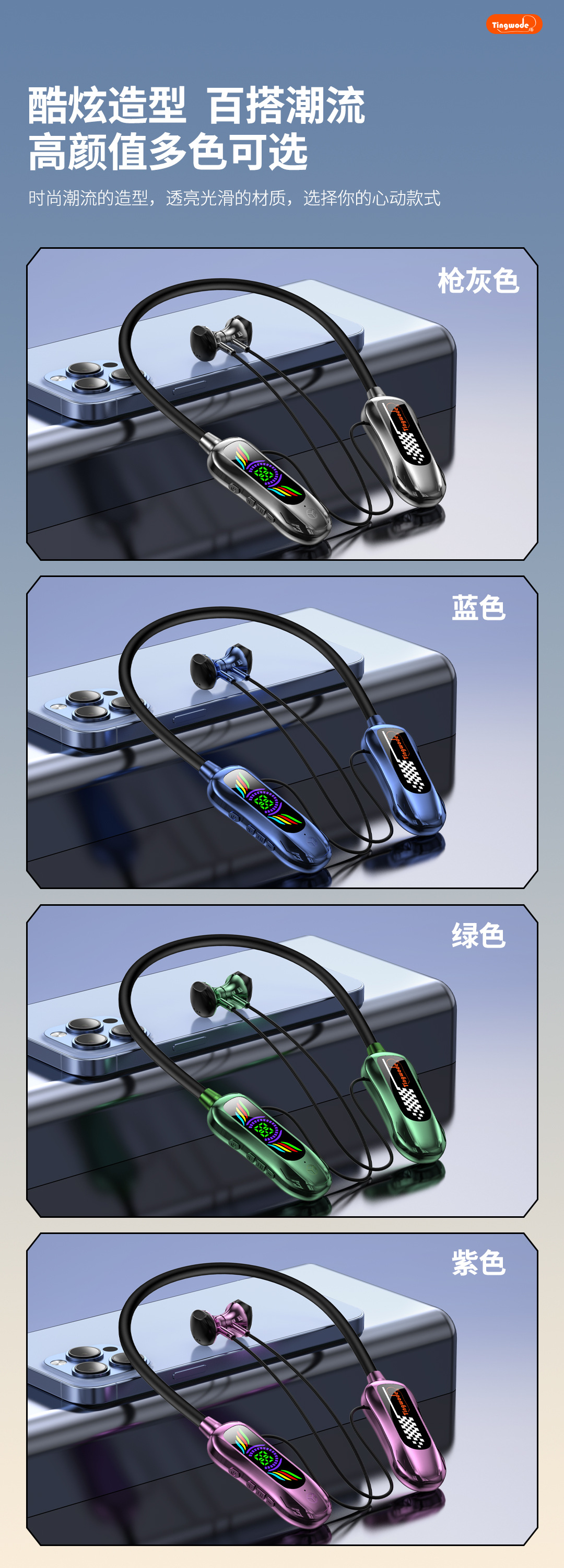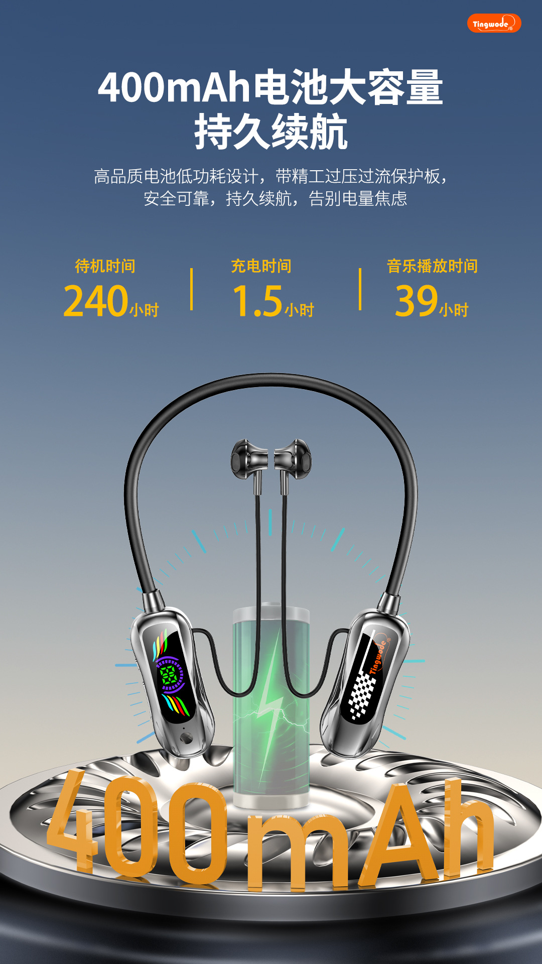 뜨거운 판매 목 장착형 헤드폰 국경 간 새로운 고품질 편안한 착용 슈퍼 긴 배터리 수명 스포츠 목 장착형 블루투스 헤드폰
