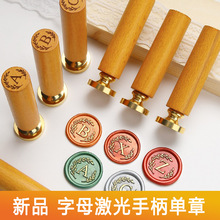 叶子字母激光手柄单章 火漆印章 26个英文字母章头+榉木把柄 套装