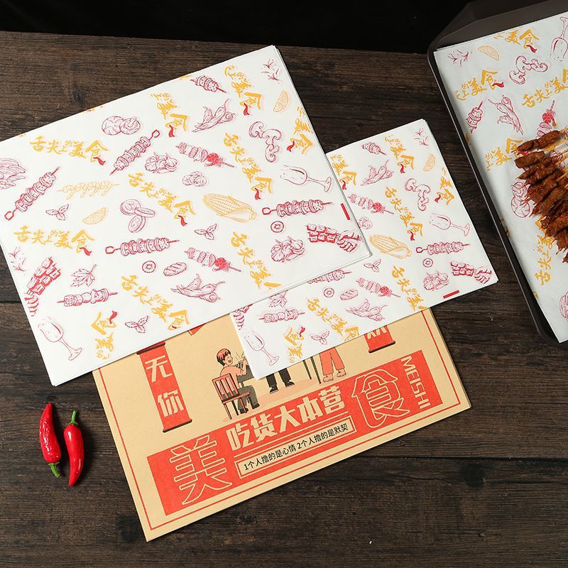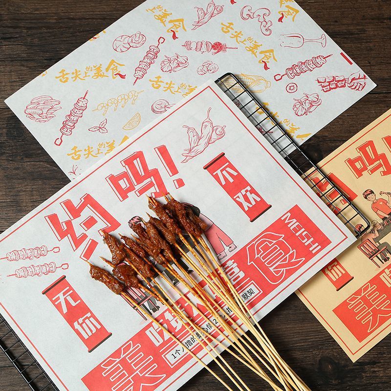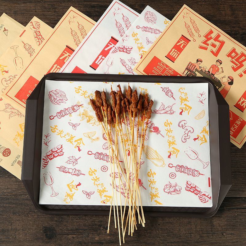 기름 방지 식품 일회용 바베큐 매트 종이 토스트 접시 꼬치 튀김 과자 상업용 기름 방지 종이스토어 가기