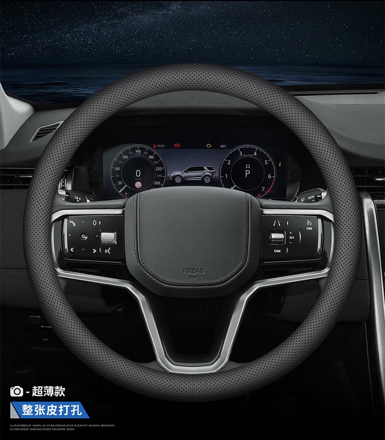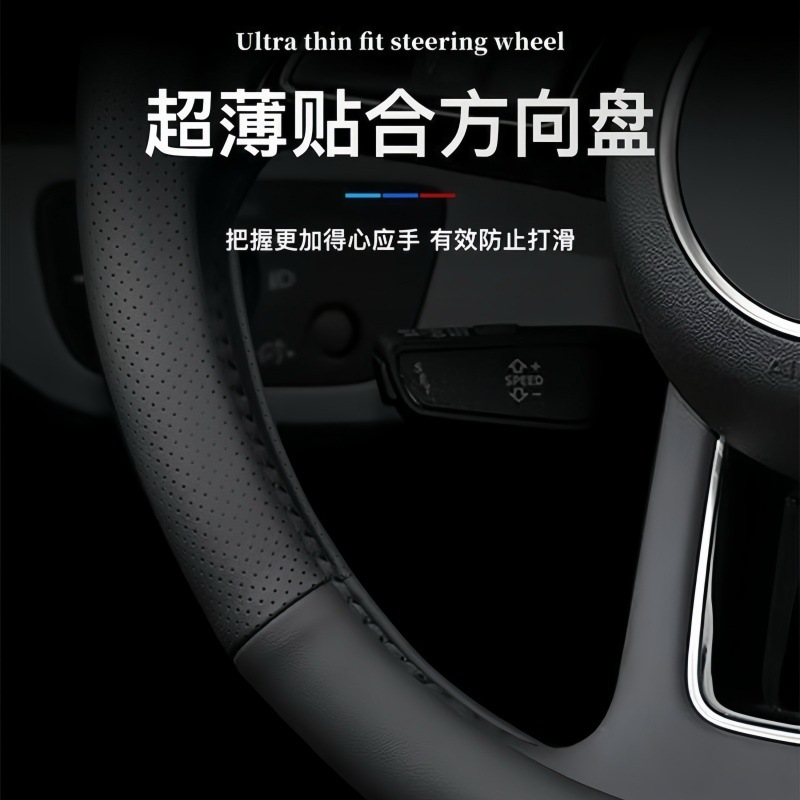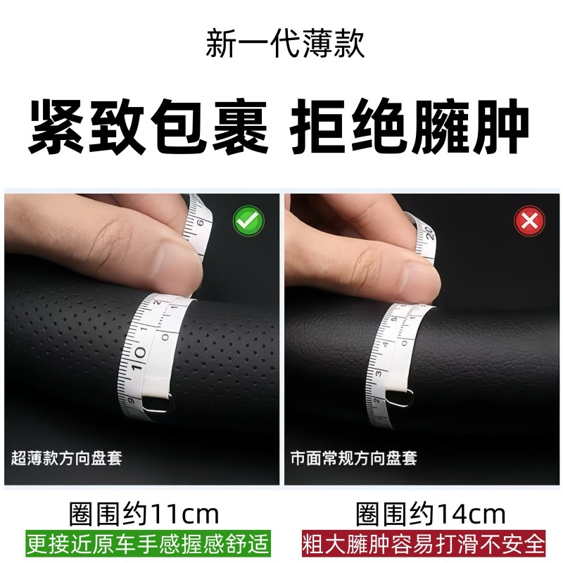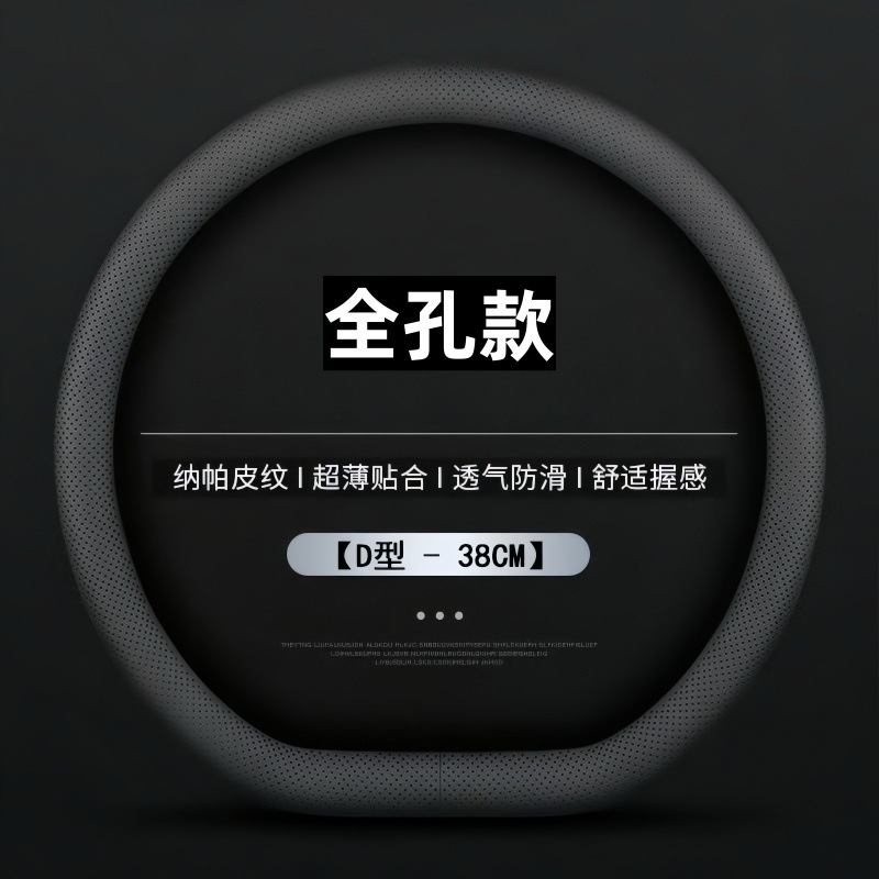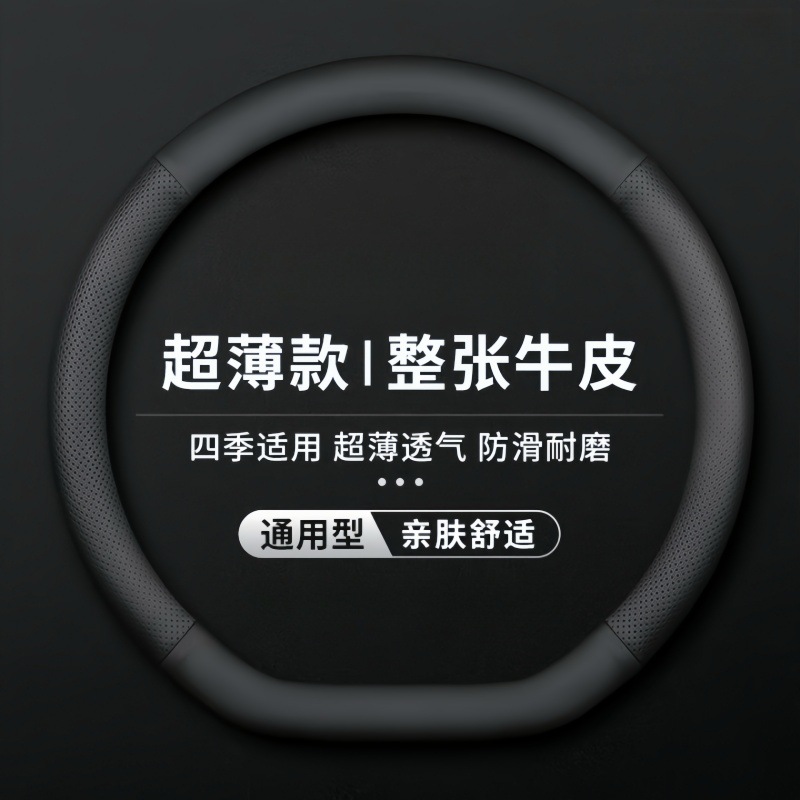 자동차 핸들 커버, 천연 가죽, 사계절 범용 핸들 커버, 초박형 땀 흡수 및 미끄럼 방지 D형 원형 소가죽 핸들 커버