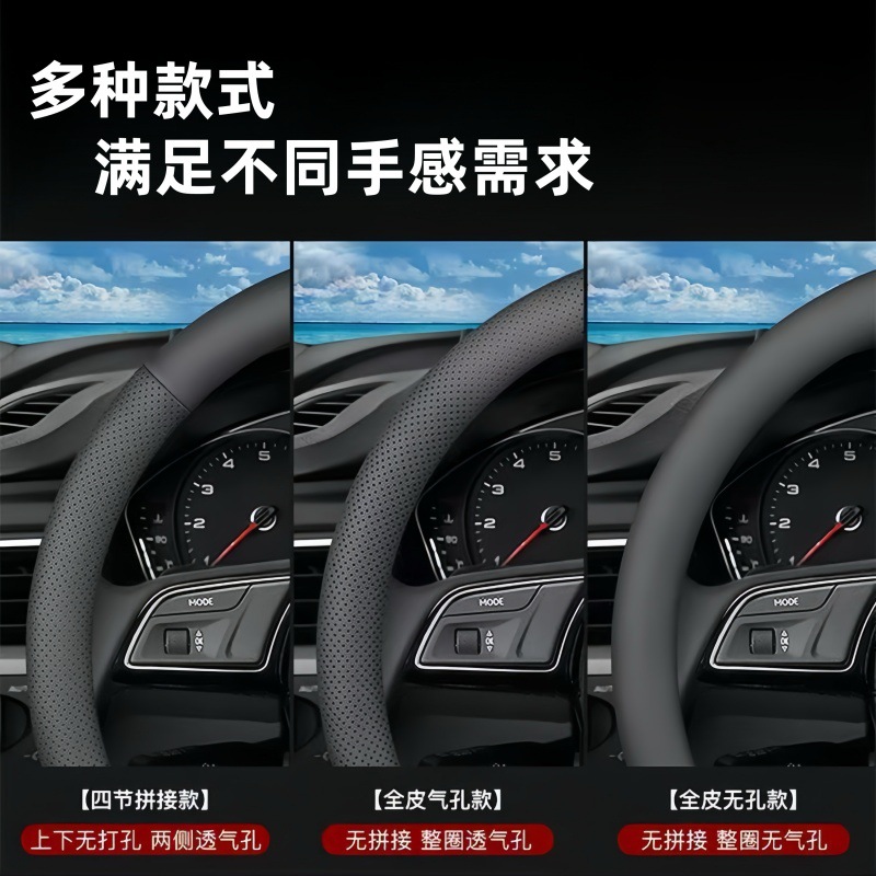 자동차 핸들 커버, 천연 가죽, 사계절 범용 핸들 커버, 초박형 땀 흡수 및 미끄럼 방지 D형 원형 소가죽 핸들 커버스토어 가기