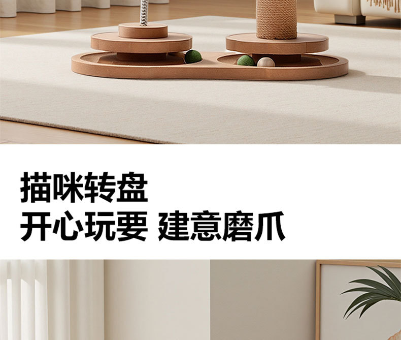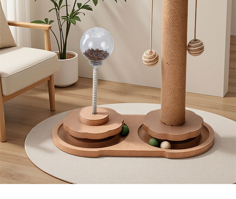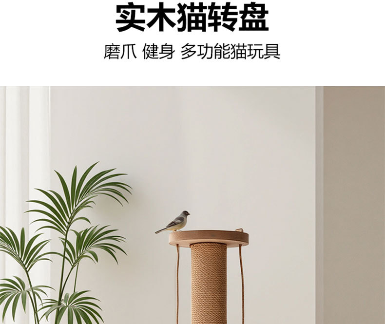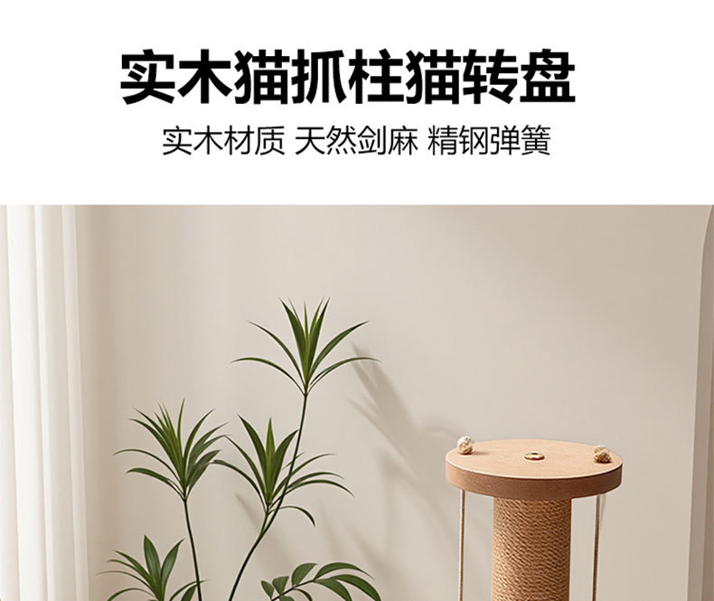 고양이용 사이잘 스크래쳐, 내마모성 목재 고양이 클라이밍 프레임, 고양이 장난감 턴테이블, 자기 자극 및 지루함 해소 고양이 스크래쳐