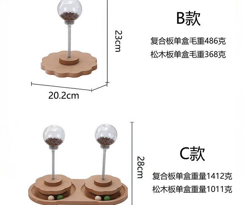 亲爱的各位买家,我们的猫爬架的漏食球主要可以放猫粮、狗粮、冻干