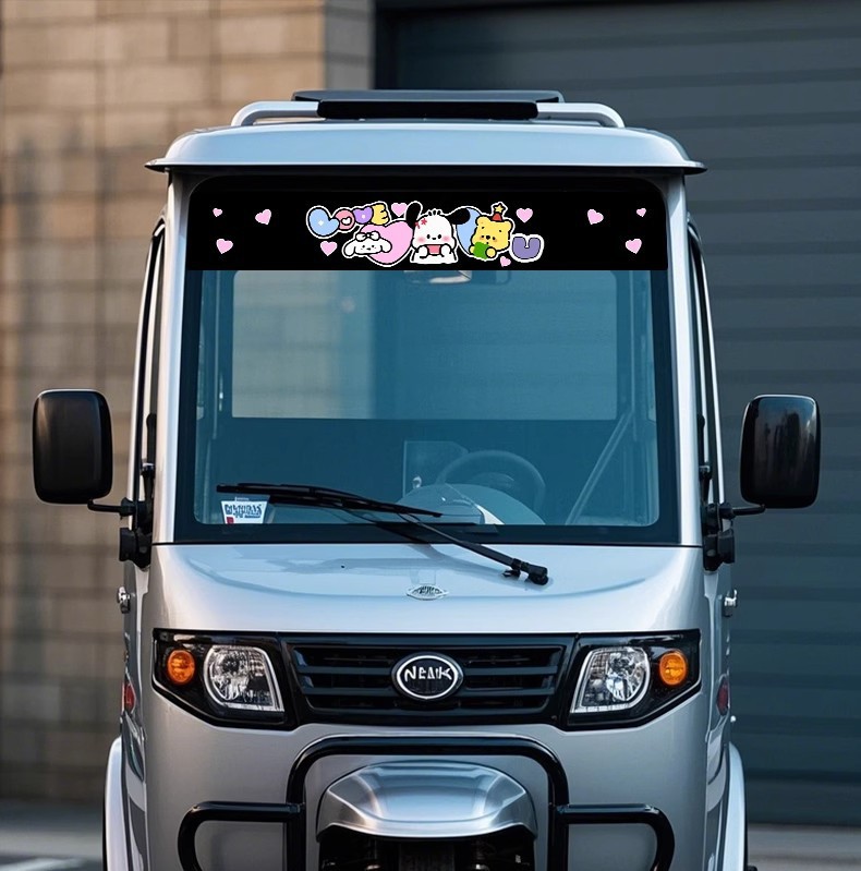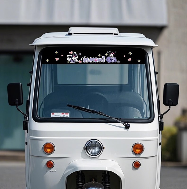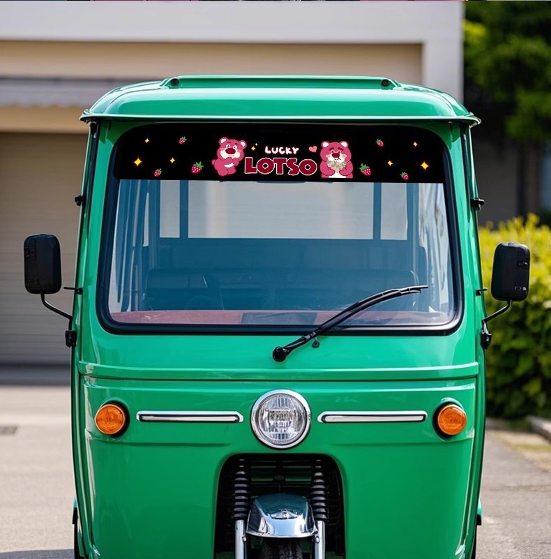 전기 삼륜차 앞 유리 자외선 차단 스티커 전기 삼륜차 스티커 장식 탄소 섬유 패턴 차양 및 차광 만화 스티커