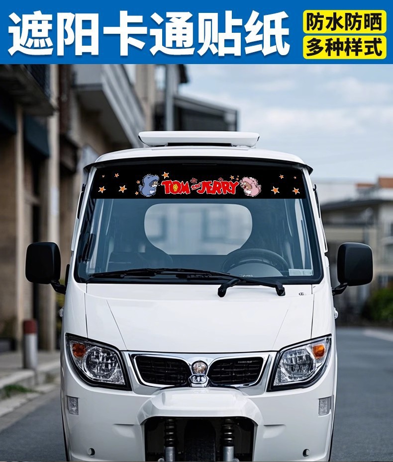 전기 삼륜차 앞 유리 자외선 차단 스티커 전기 삼륜차 스티커 장식 탄소 섬유 패턴 차양 및 차광 만화 스티커스토어 가기