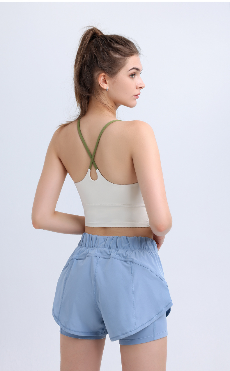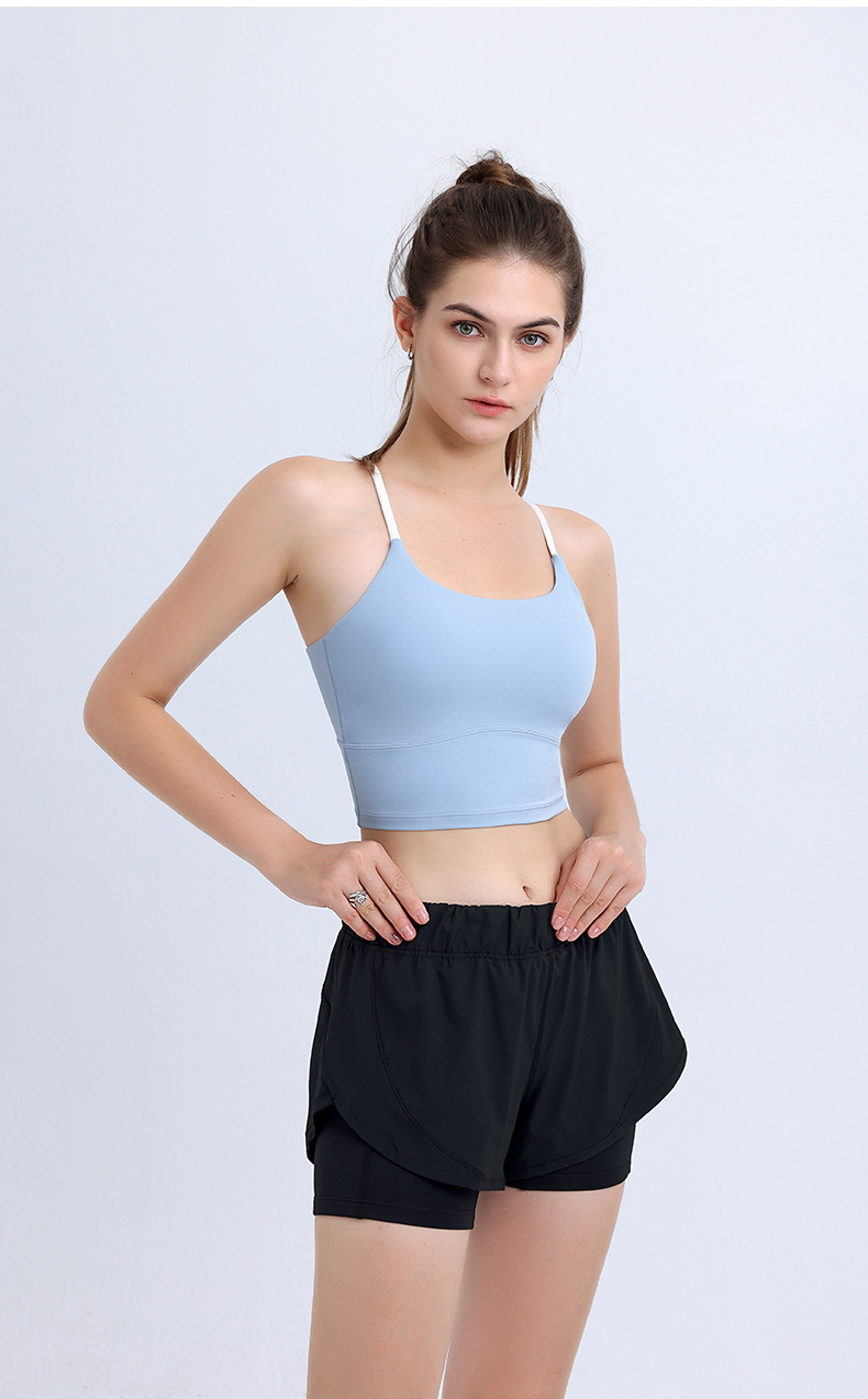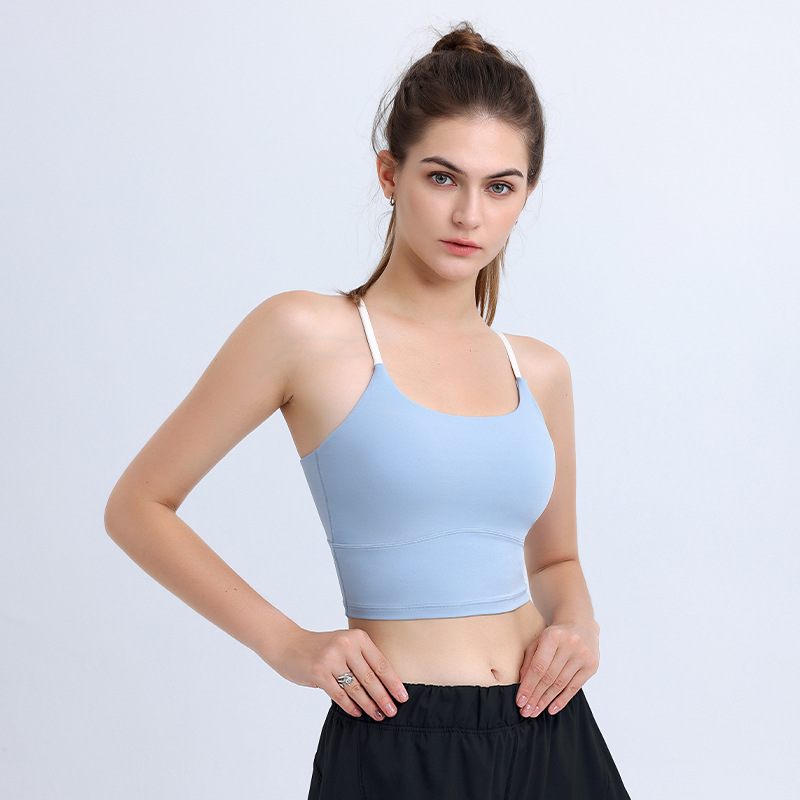 누드 콘트라스트 컬러 U 넥 스포츠 브라, 얇은 어깨 크로스 뷰티 백 브라, 여성용 기본 요가 피트니스 조끼스토어 가기
