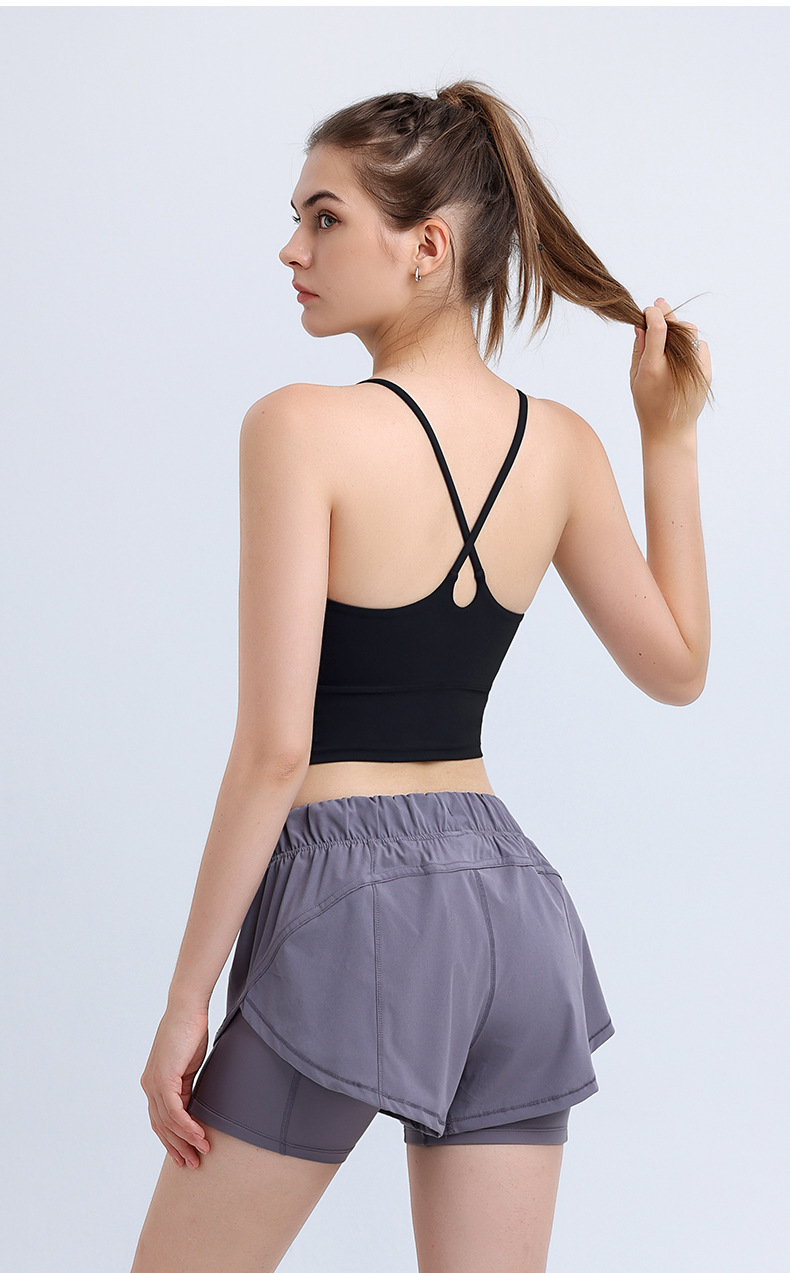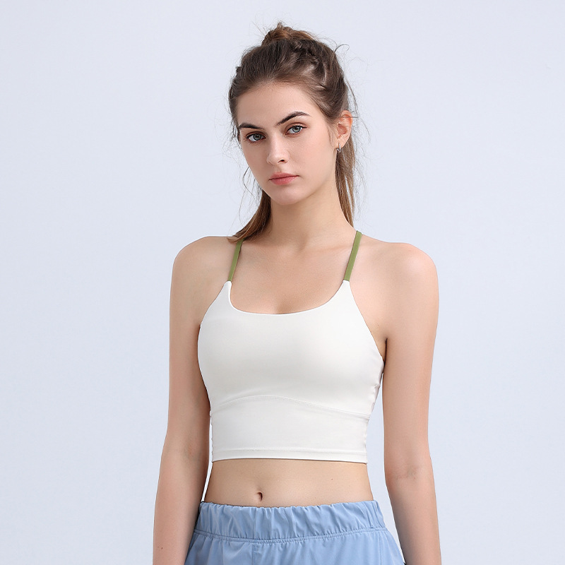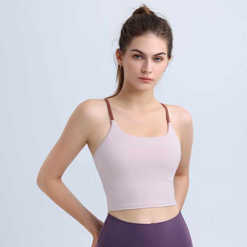 누드 콘트라스트 컬러 U 넥 스포츠 브라, 얇은 어깨 크로스 뷰티 백 브라, 여성용 기본 요가 피트니스 조끼