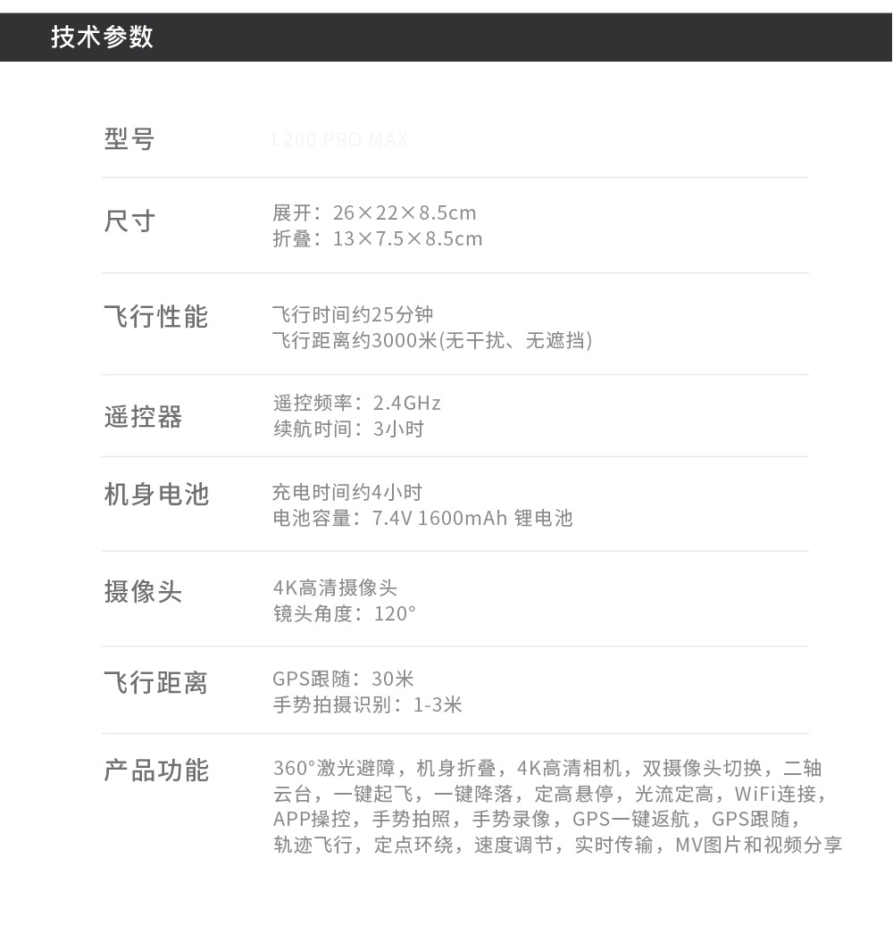• 장애물 회피 장치가 없는 L200 PRO MAX