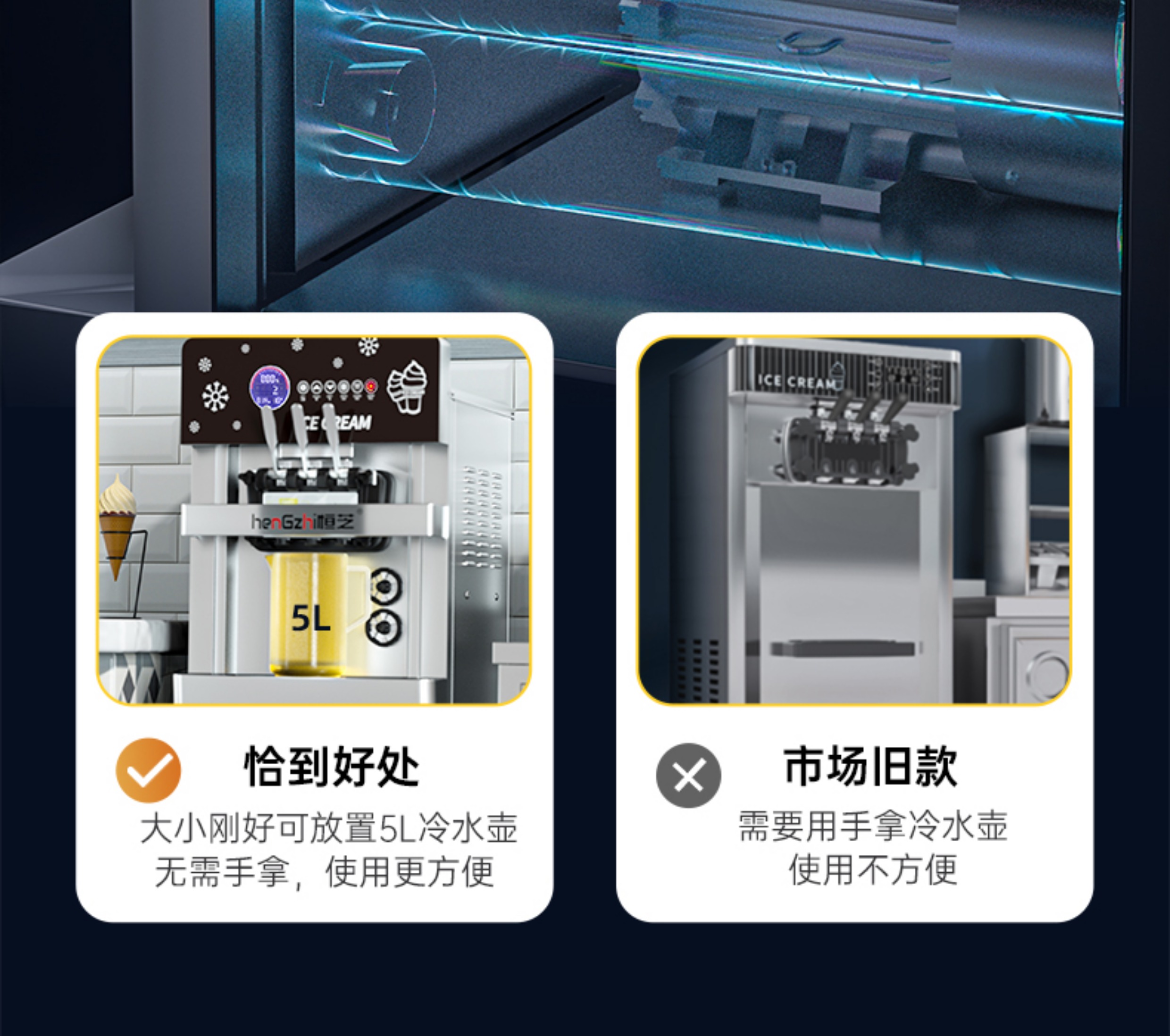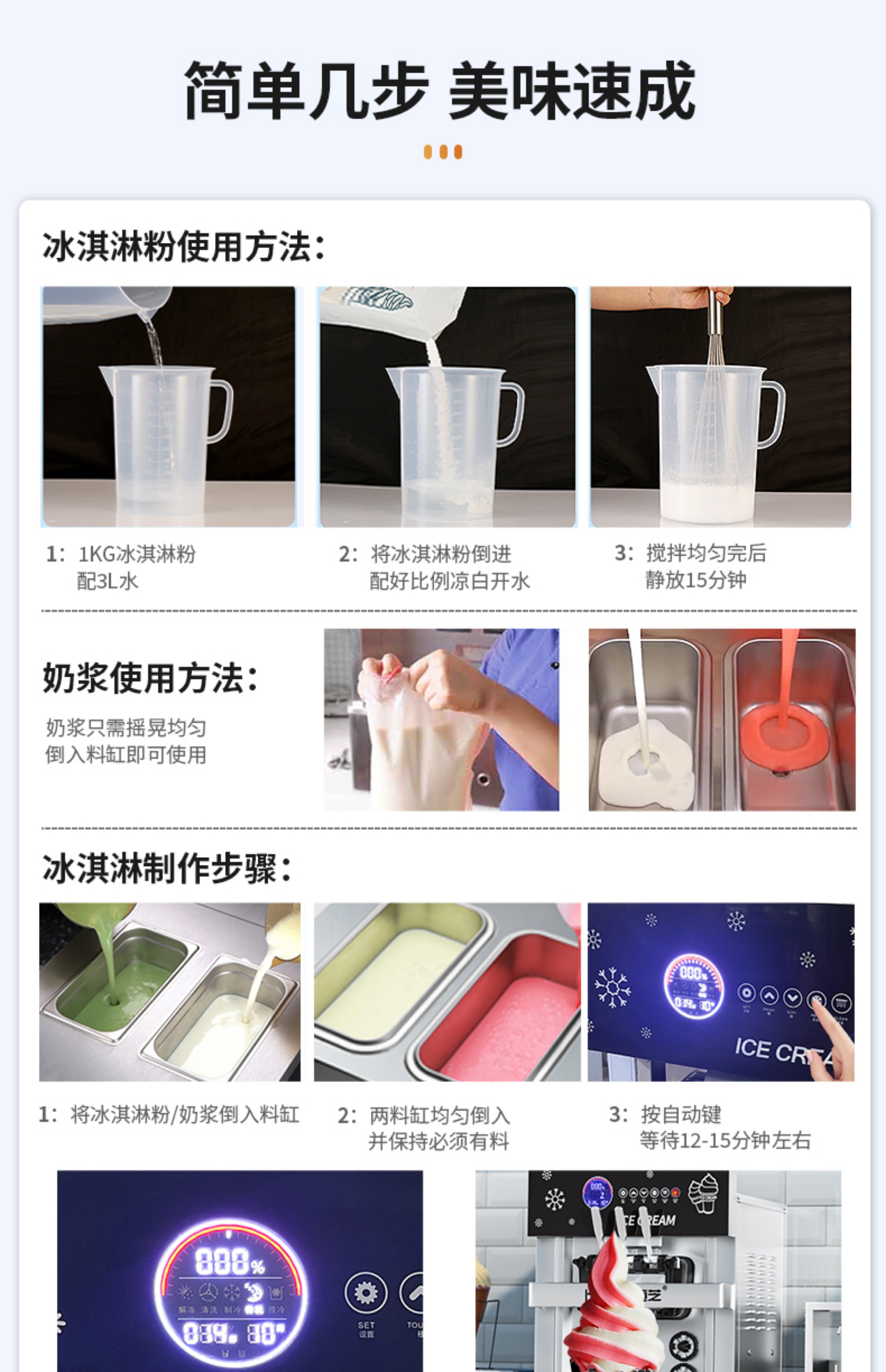 • 데스크탑 LCD 터치스크린 모델, 사전 냉각 및 해동 기능, 연속 25~30회 사용(완전 자동 청소 + 7일 무청소)