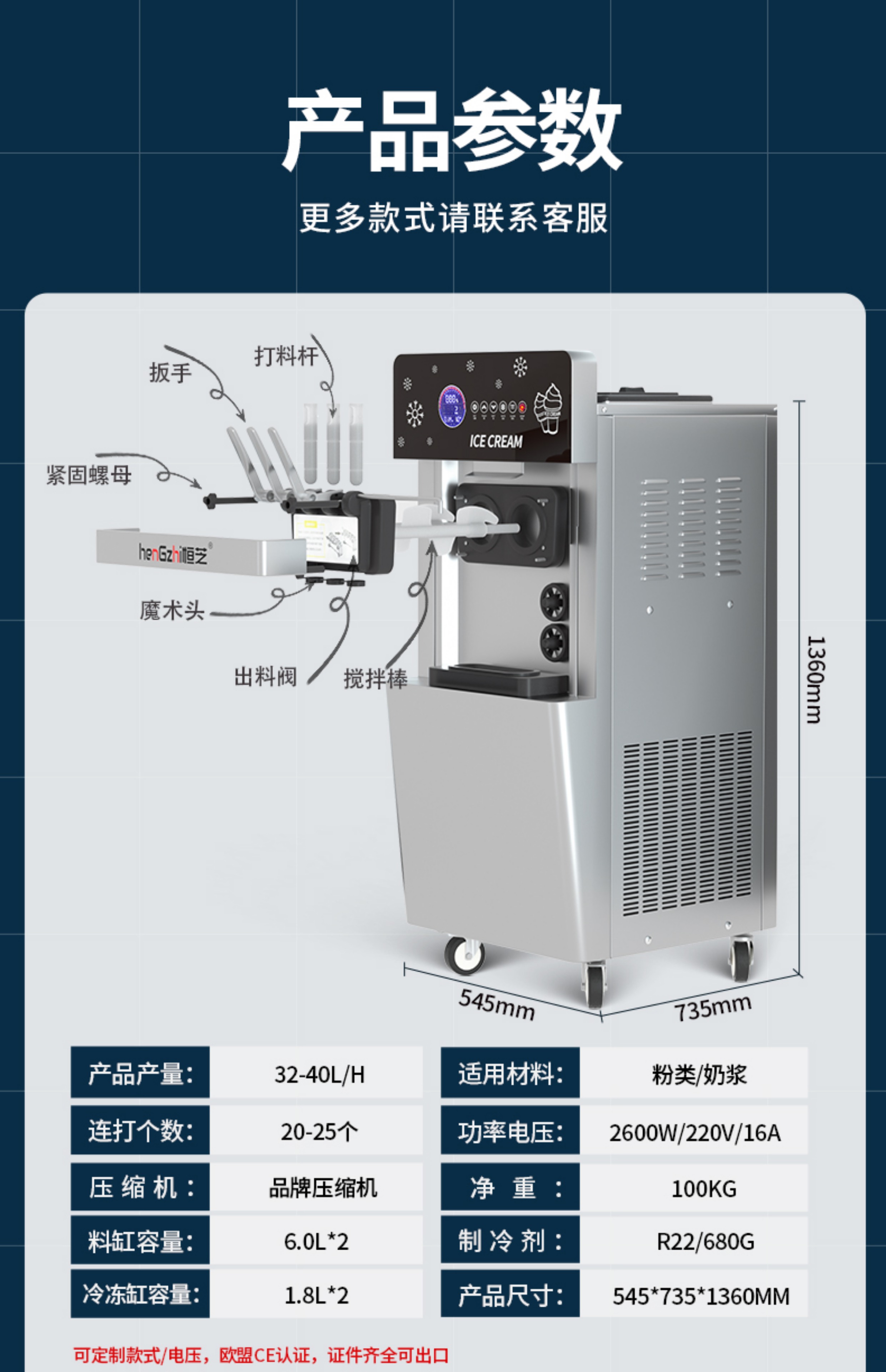 • 수직형 LCD 터치스크린 수입 압축기, 사전 냉각 및 해동 기능, 연속 28-35회(자동 청소 + 7일 무세척)