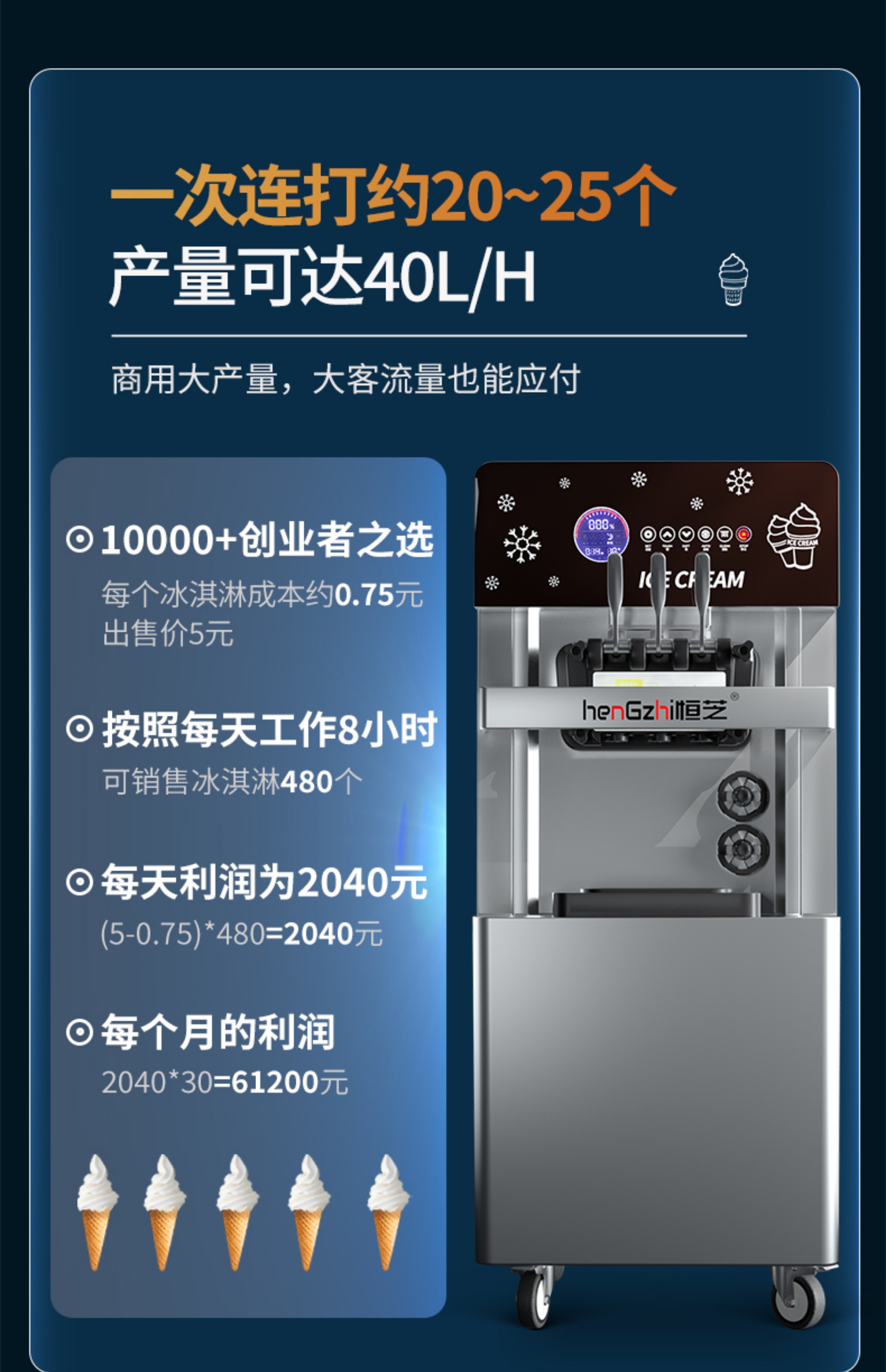Hengzhi 수직 아이스크림 기계 상업용 완전 자동 데스크탑 아이스크림 기계 아이스크림 기계 콘 기계 스톨