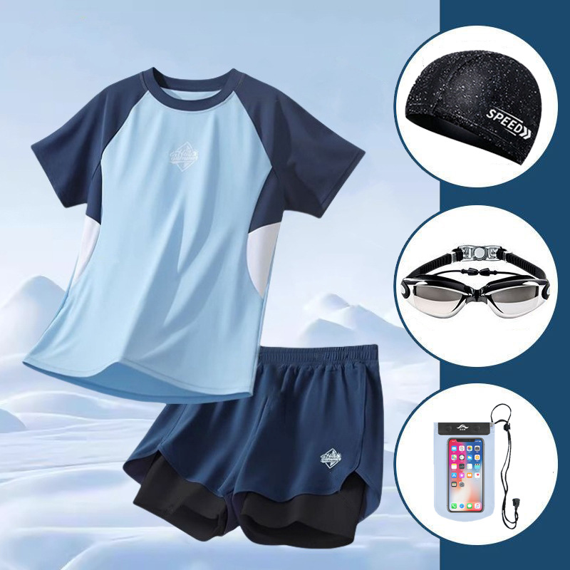 남성용 속건성 수영복 세트 2025 새로운 남성용 수영복 소년 청소년 성인의 당황스러운 방지 수영복스토어 가기