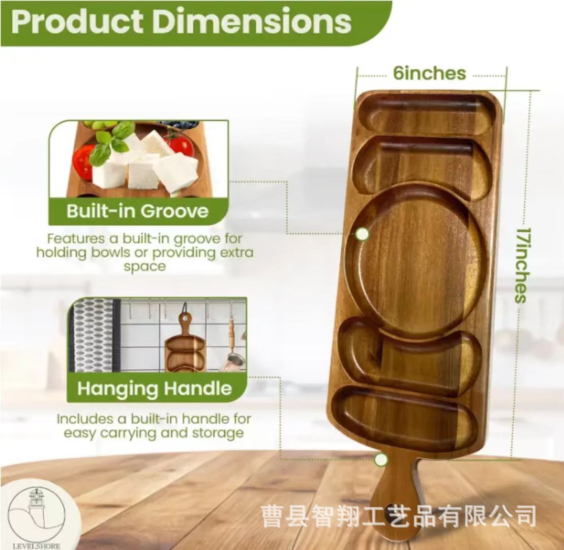 크리 에이 티브 나무 트레이 스테이크 피자 직사각형 디너 플레이트 칸막이 디너 플레이트 과일 케이크 단단한 나무 트레이스토어 가기