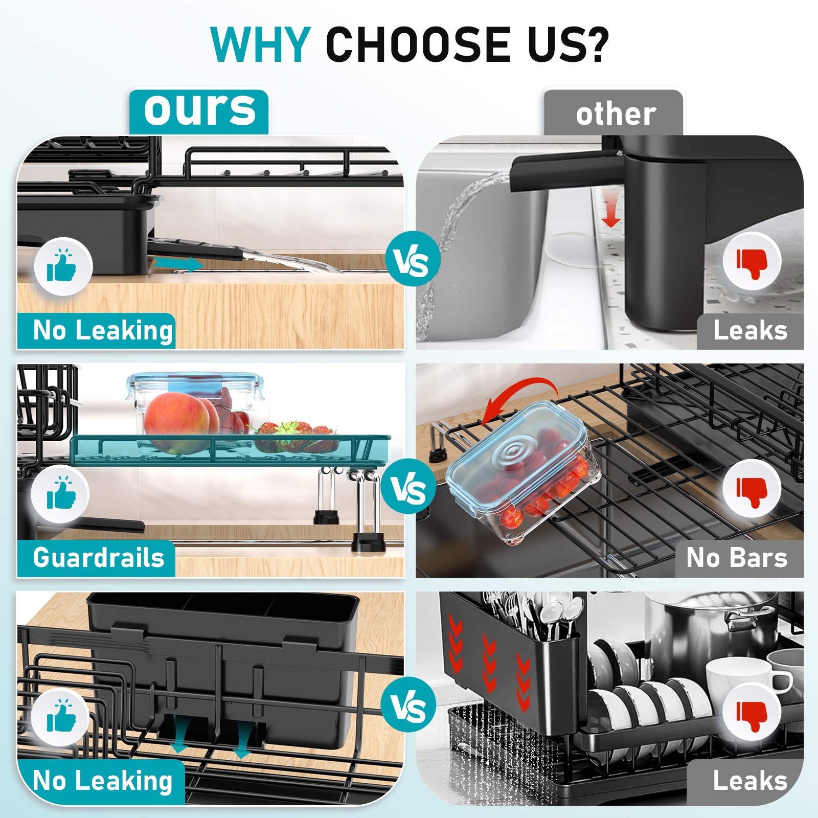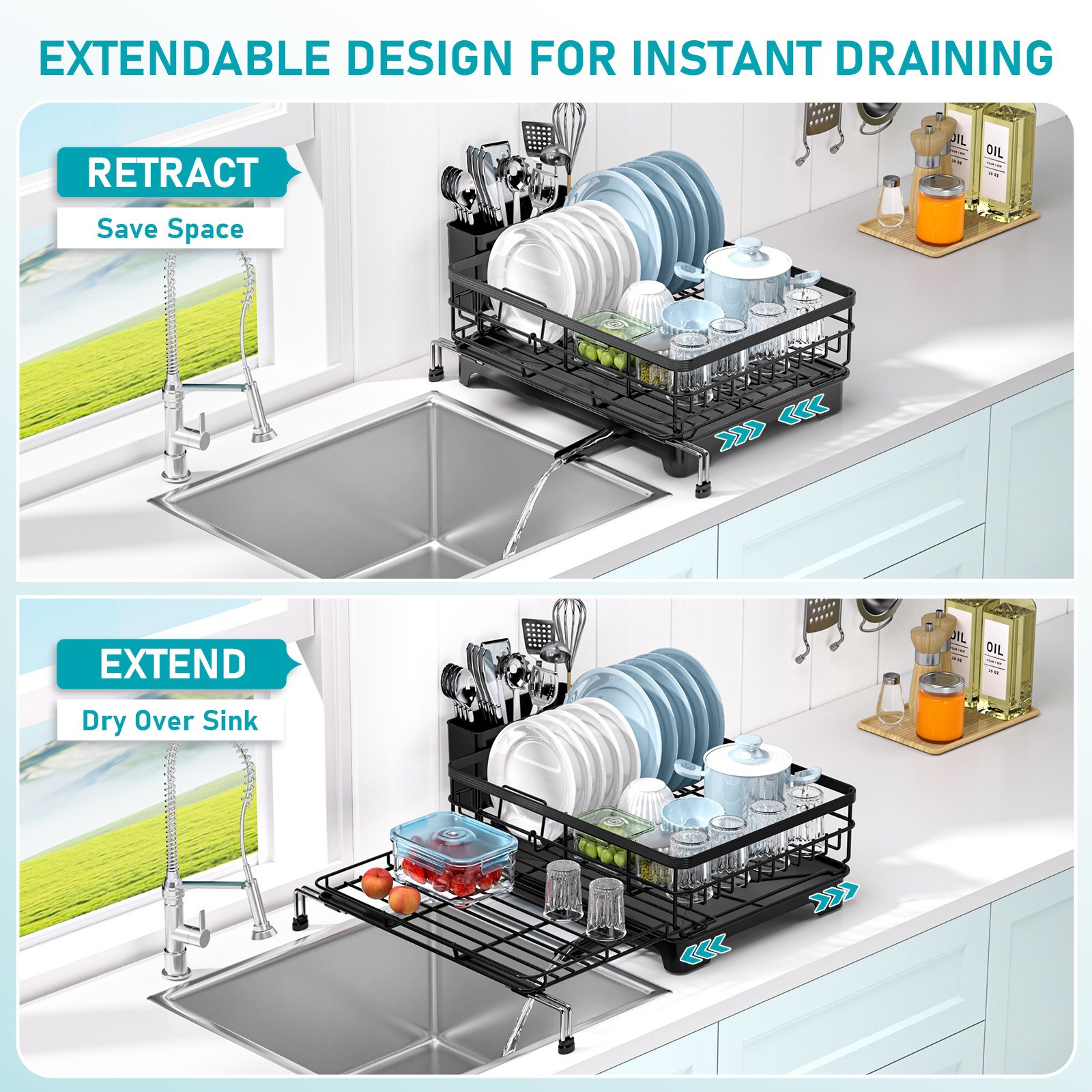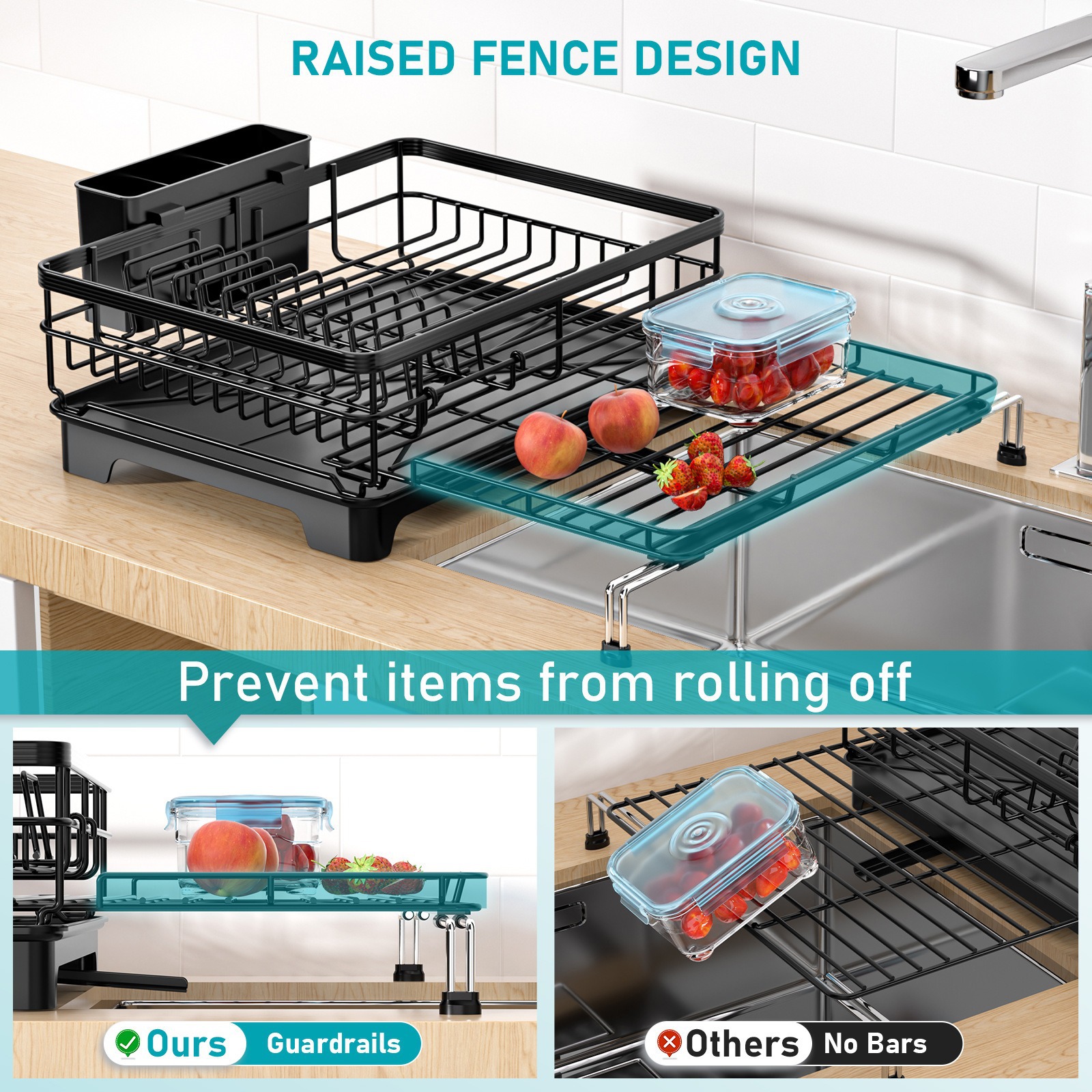 주방 식기 세척기 조리대 다기능 배수 랙은 접시, 냄비, 접시, 야채 및 과일 냄비 랙, 싱크대 보관 랙을 당겨낼 수 있습니다.