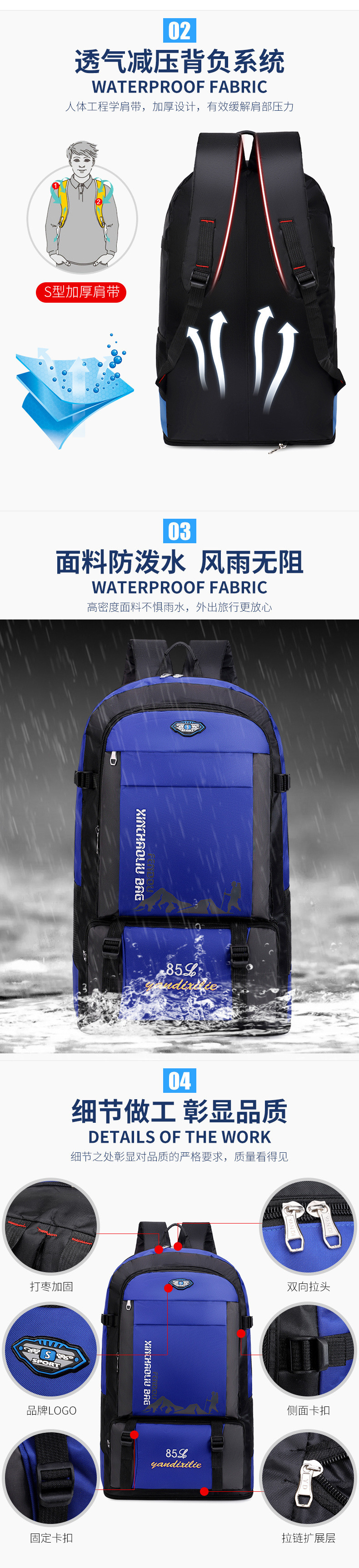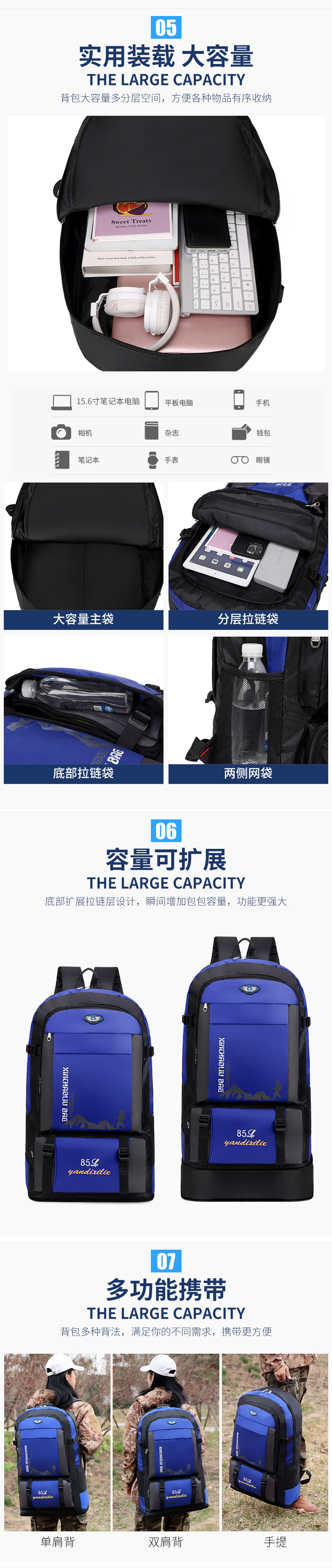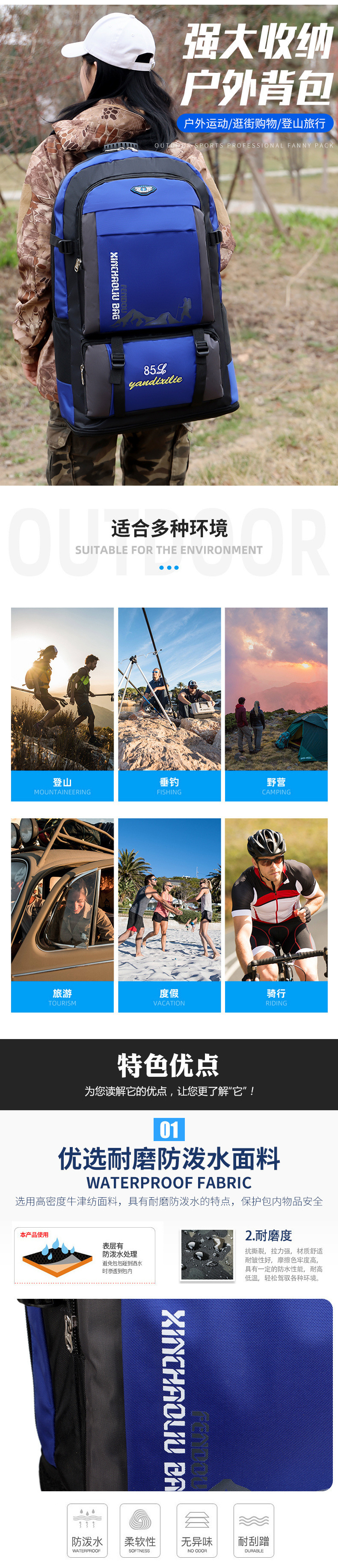• 초대형 110리터 블루의 업그레이드 버전 [허리벨트 포함]