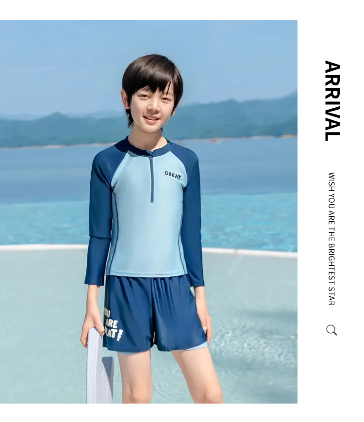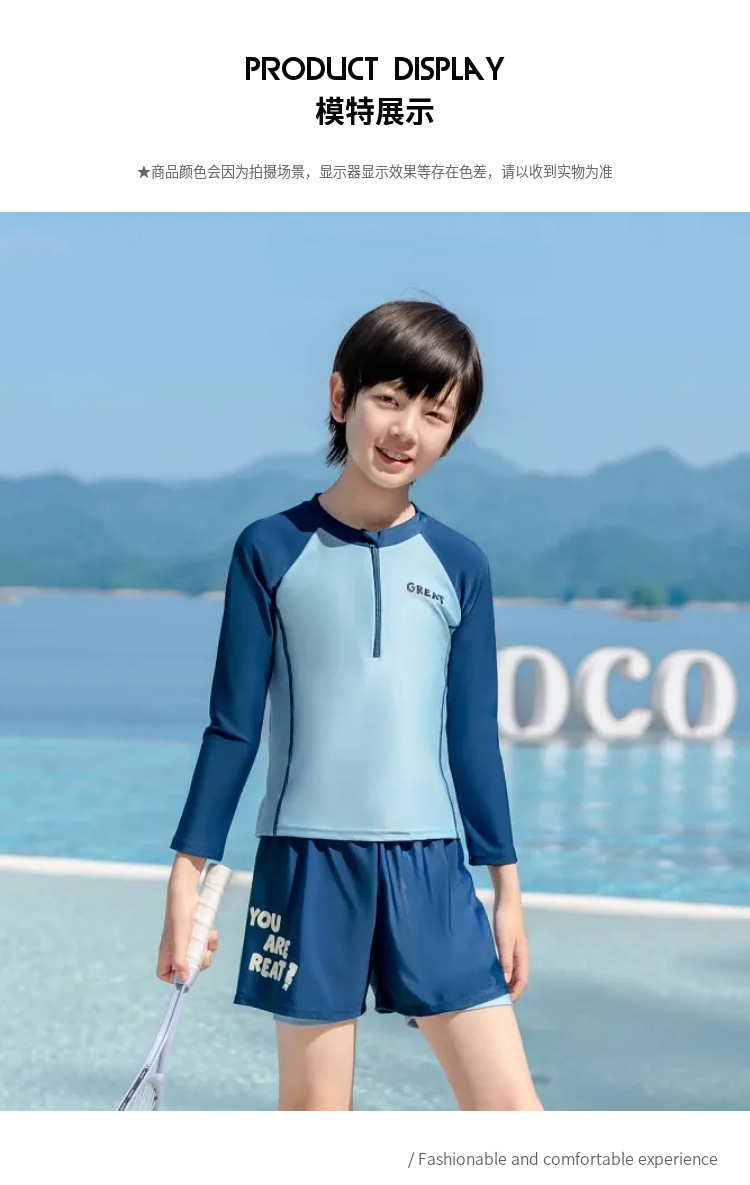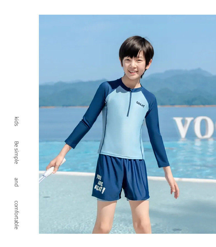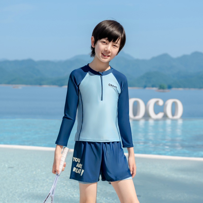 아동 수영복 소년 2025 새로운 스플릿 수영복 중대형 어린이 소년 청소년 자외선 차단 수영 트렁크 정장 여름스토어 가기