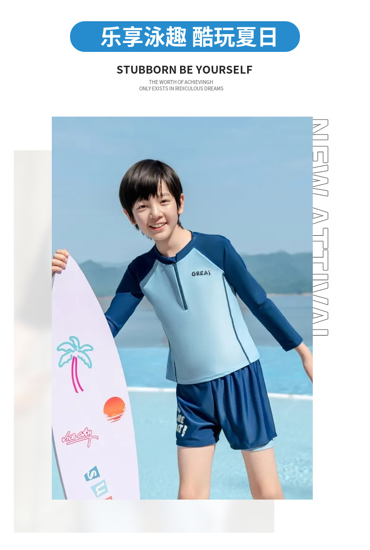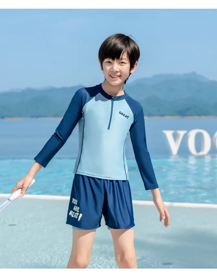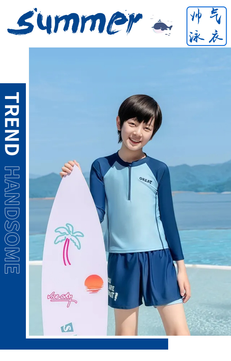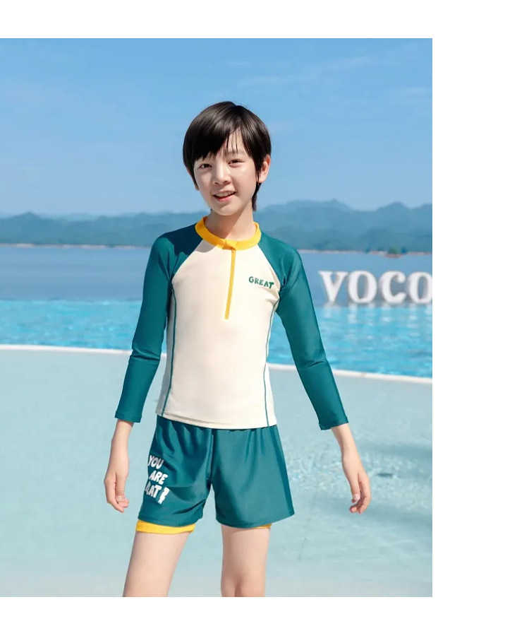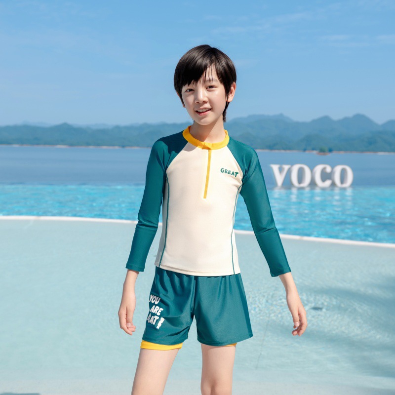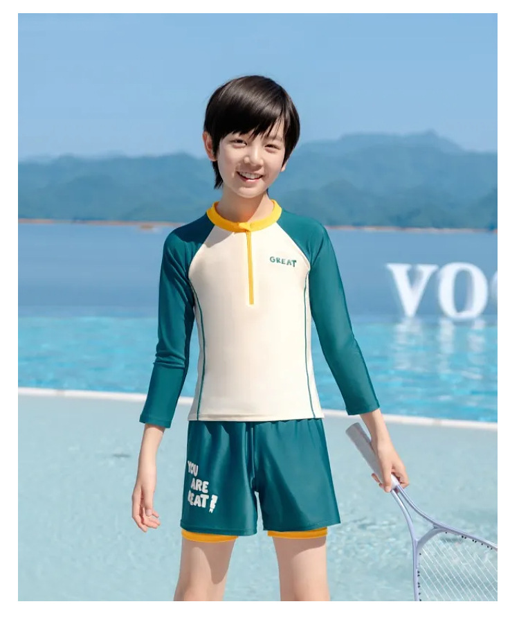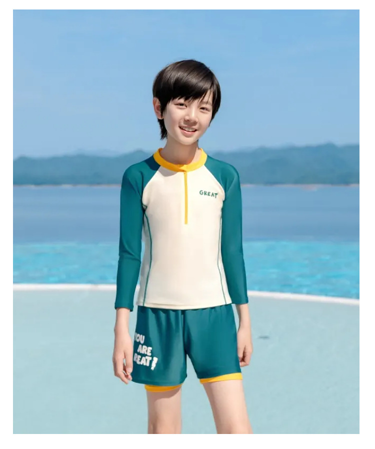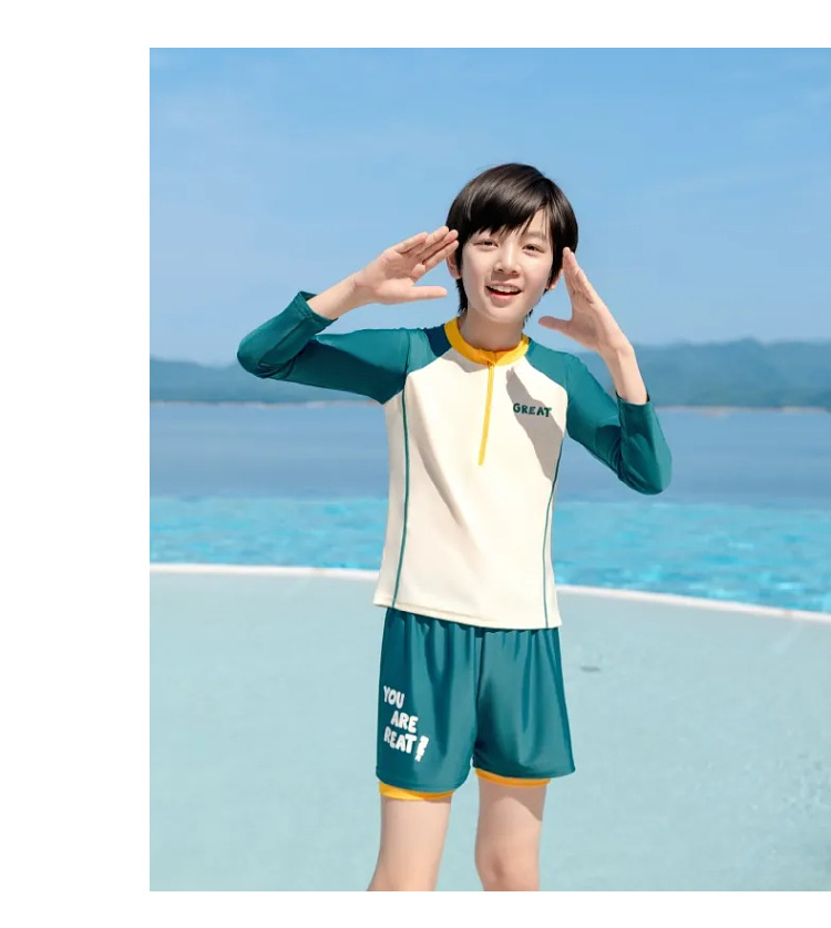 아동 수영복 소년 2025 새로운 스플릿 수영복 중대형 어린이 소년 청소년 자외선 차단 수영 트렁크 정장 여름