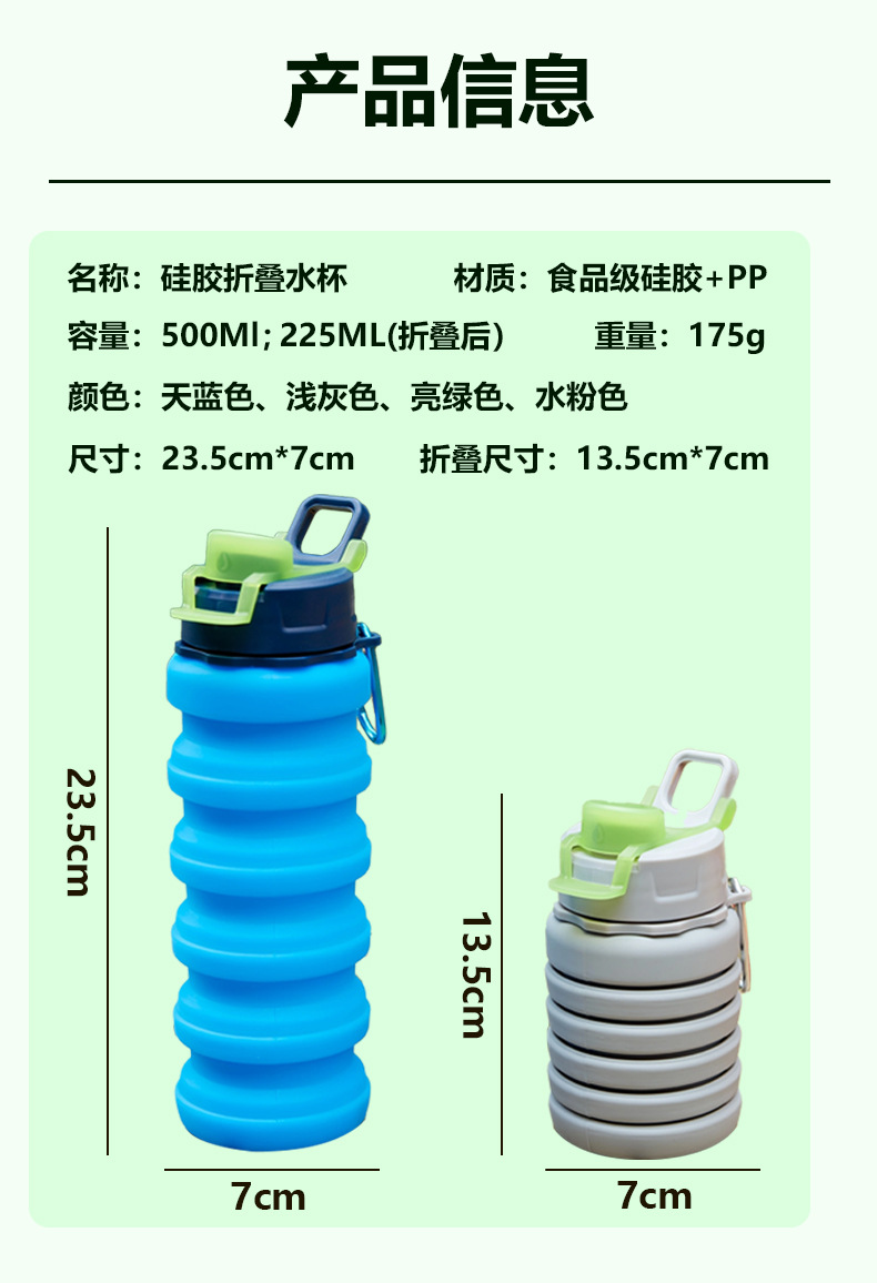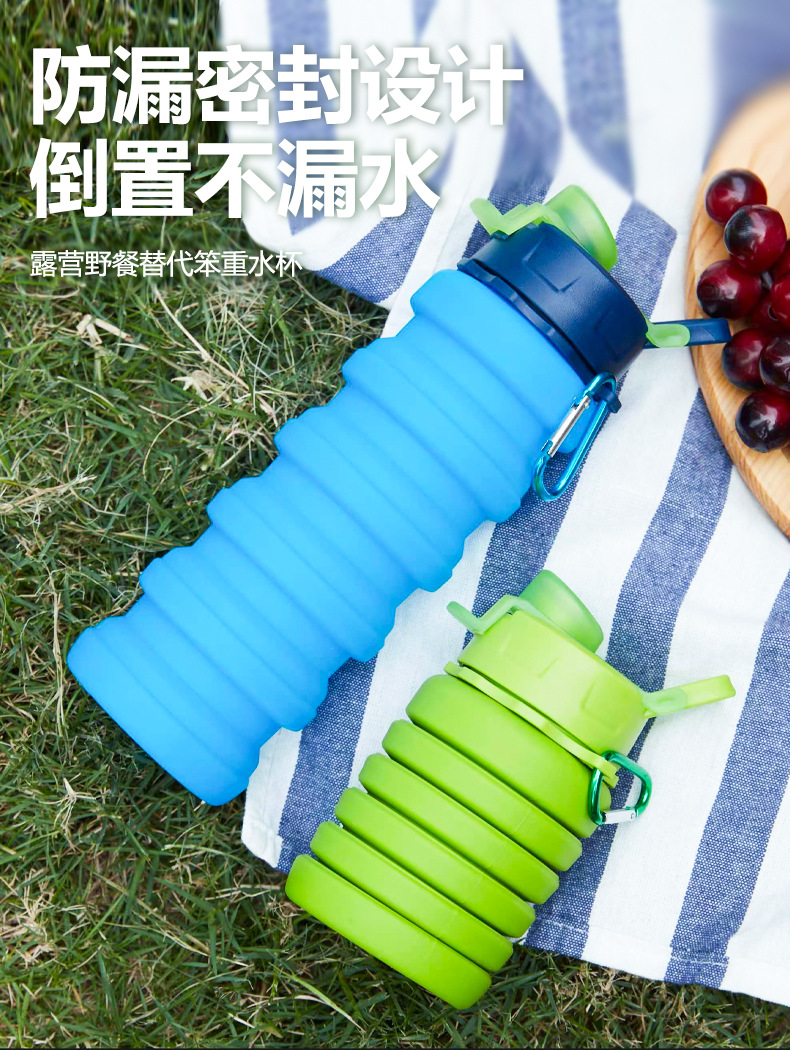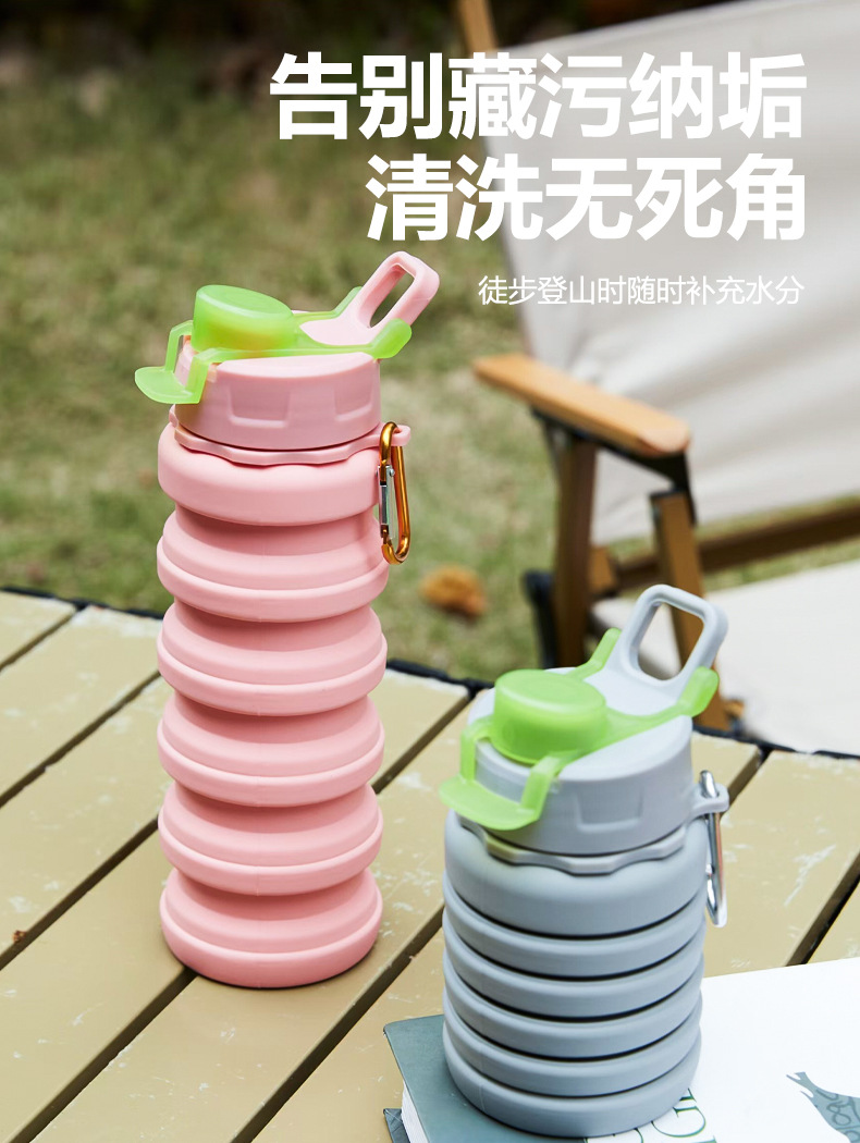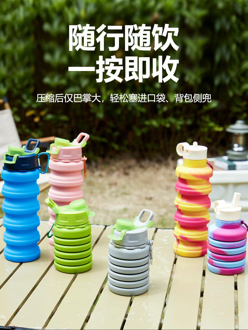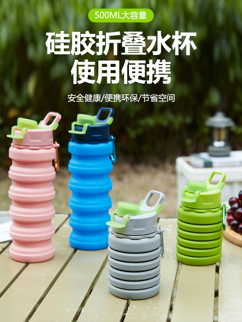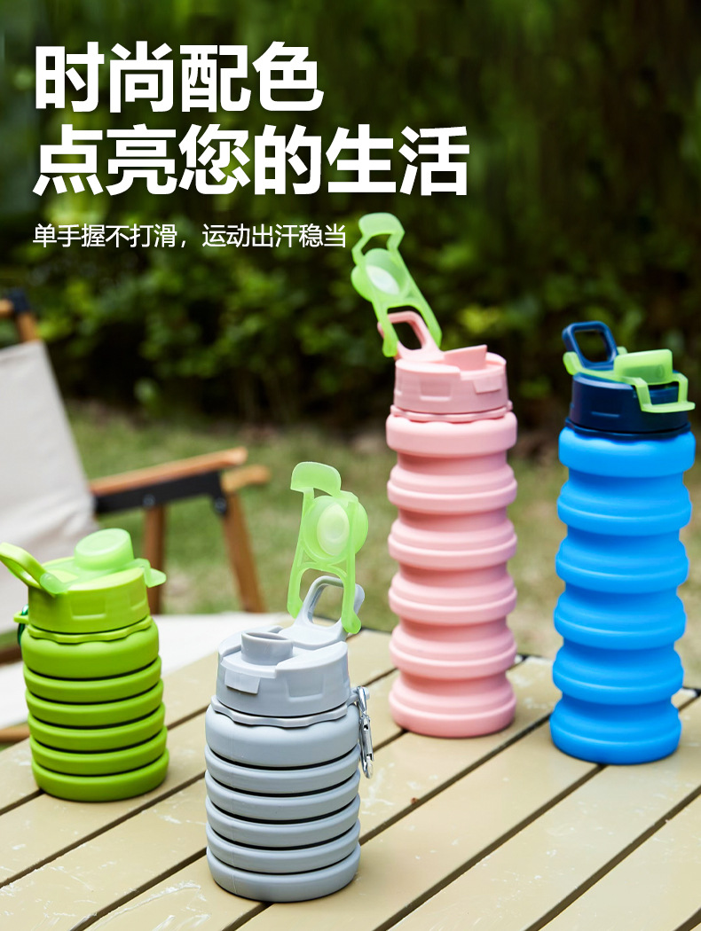 국경을 넘는 인기 생활용품 실리콘 접이식 물컵 플립탑 스타일 스포츠 야외 휴대용 신축 물병 재고 있음