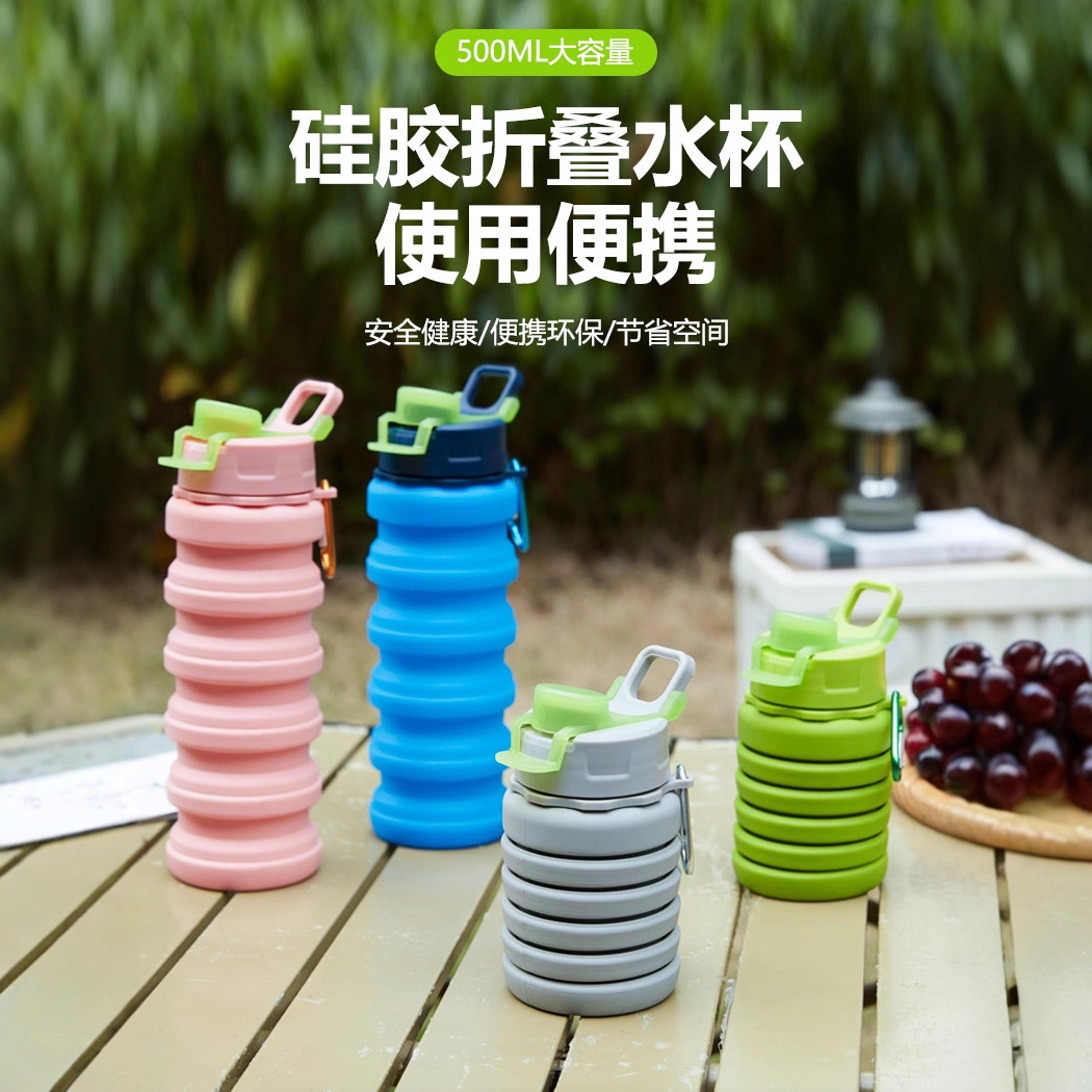 국경을 넘는 인기 생활용품 실리콘 접이식 물컵 플립탑 스타일 스포츠 야외 휴대용 신축 물병 재고 있음스토어 가기
