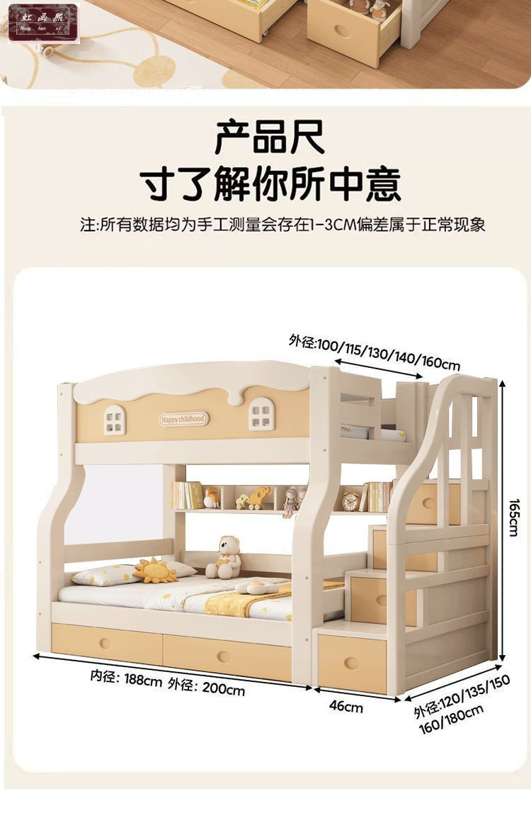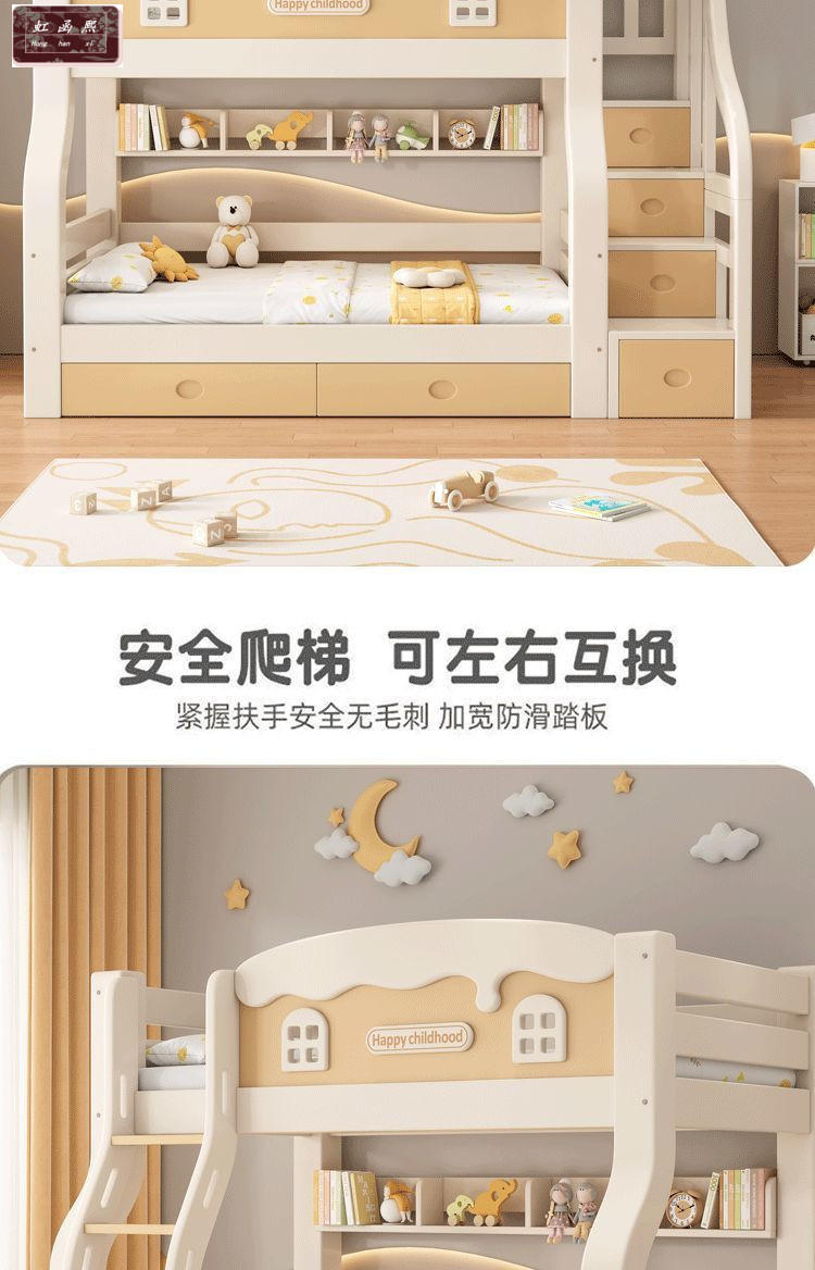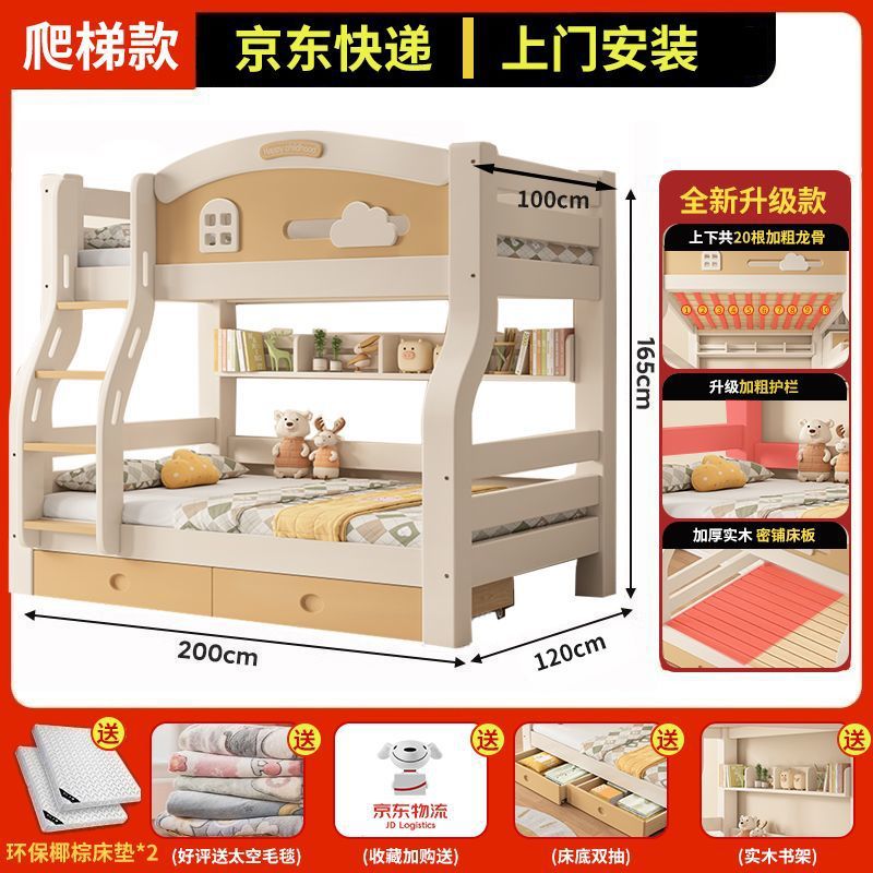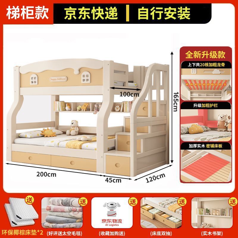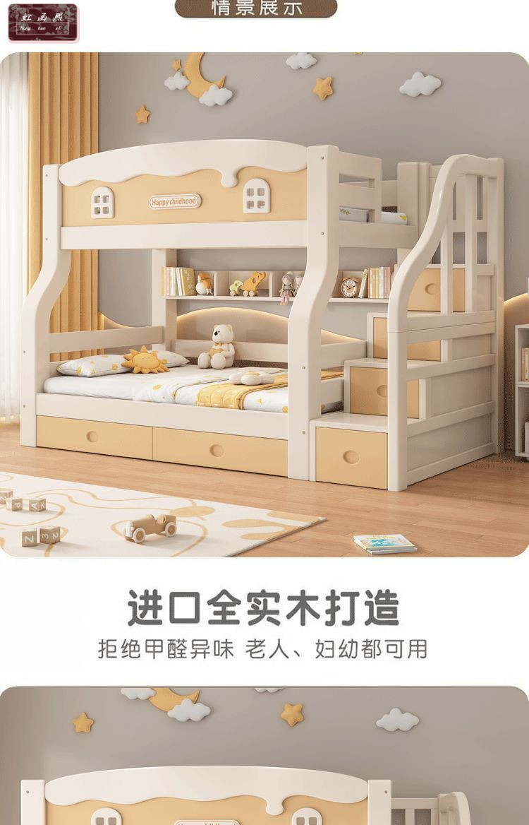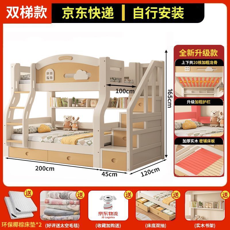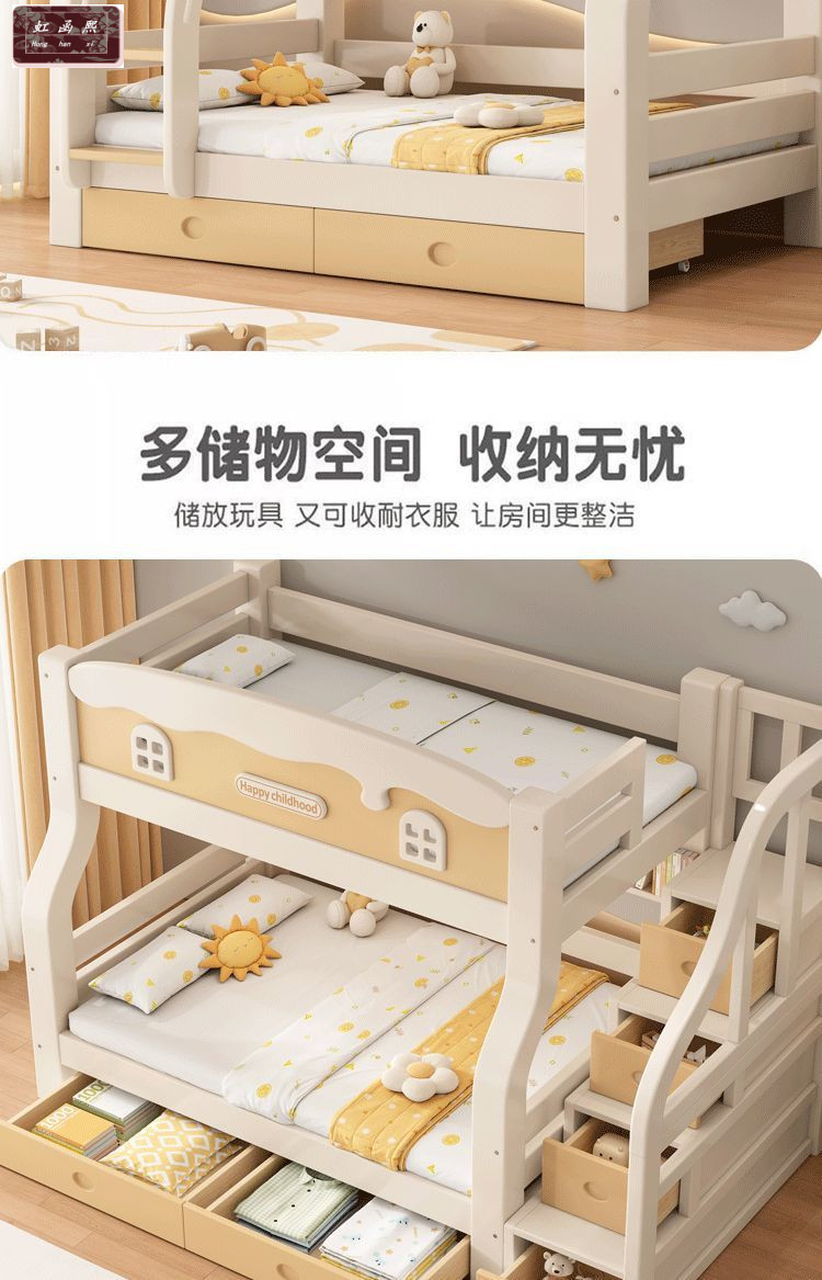 단단한 나무 이층 침대, 두껍고 높은 다기능 이층 침대 조합 침대, 높낮이 침대, 공주 침대, 어린이 침대