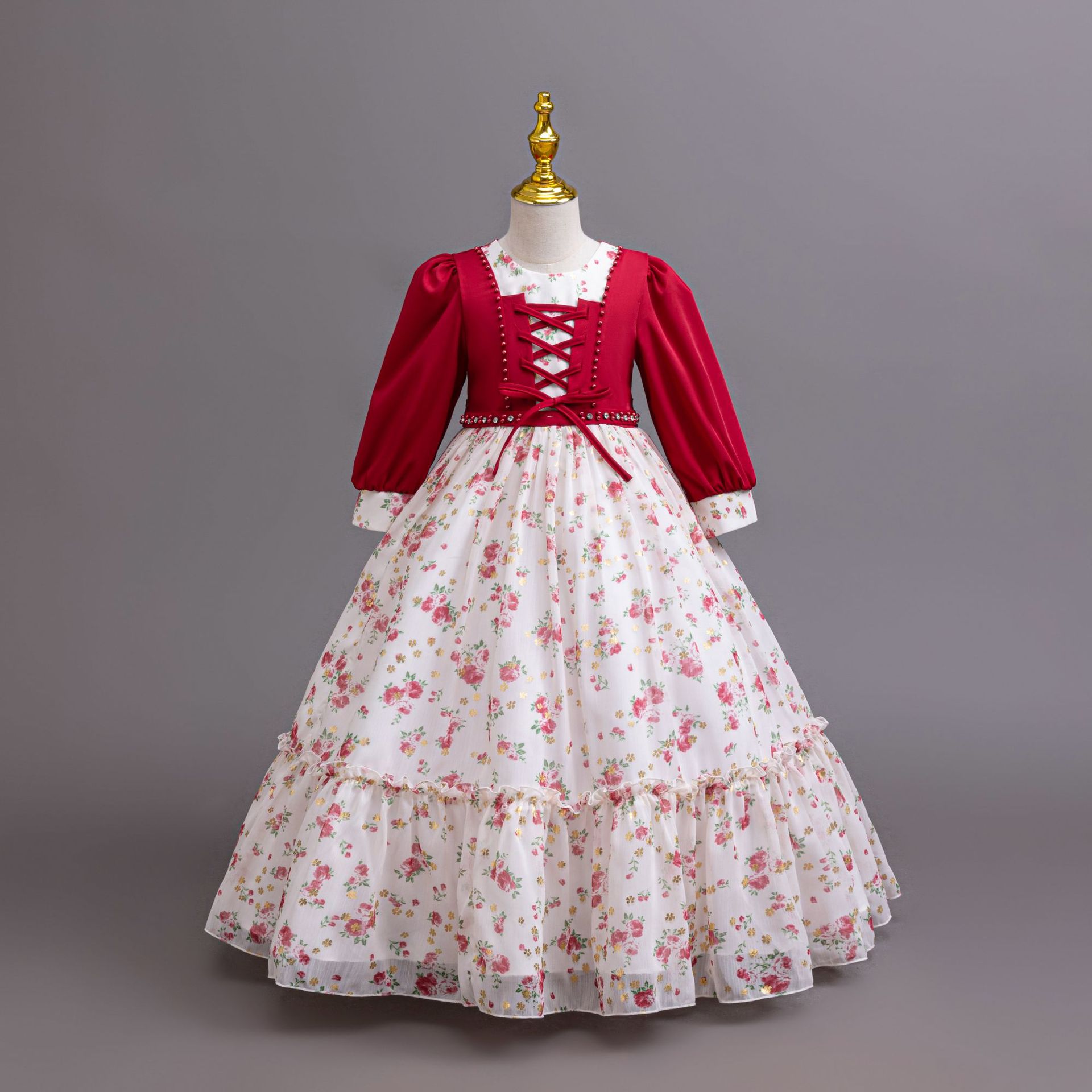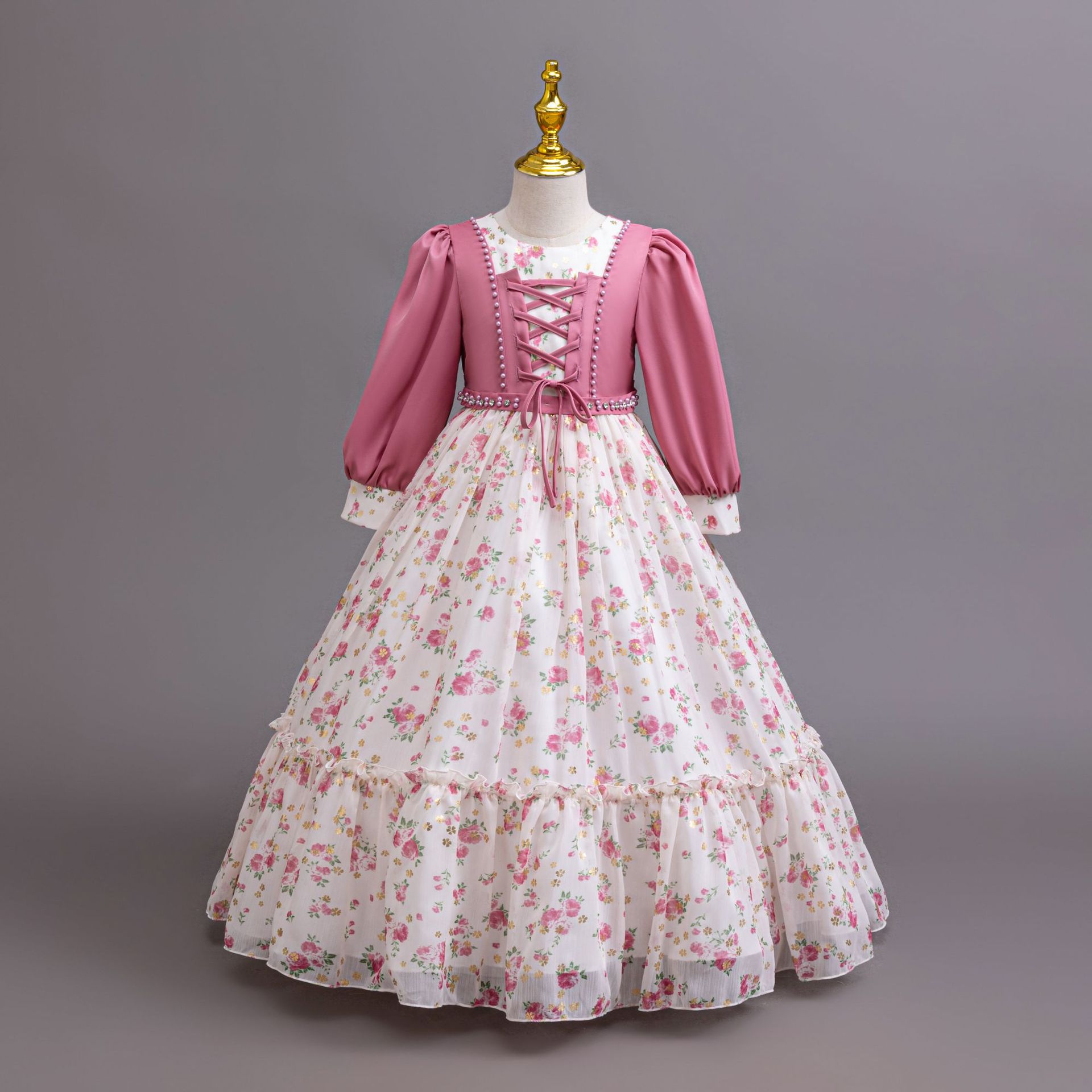 跨境专供新款女童连衣裙长袖公主裙节日派对雪纺晚礼服裙princess