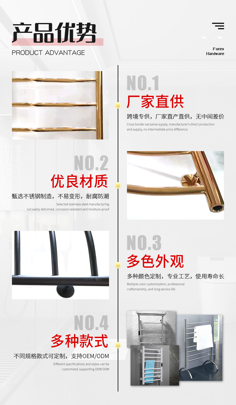 오존 수직 전기 수건 걸이 지능형 타이밍 일정한 온도 골드 수건 바 욕실 수건 건조 랙 후크 포함