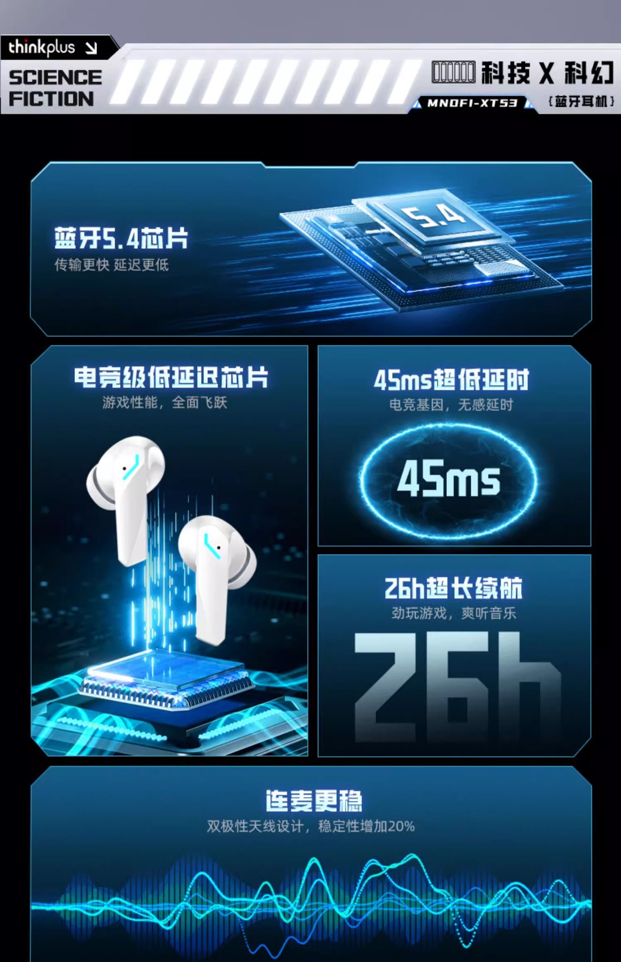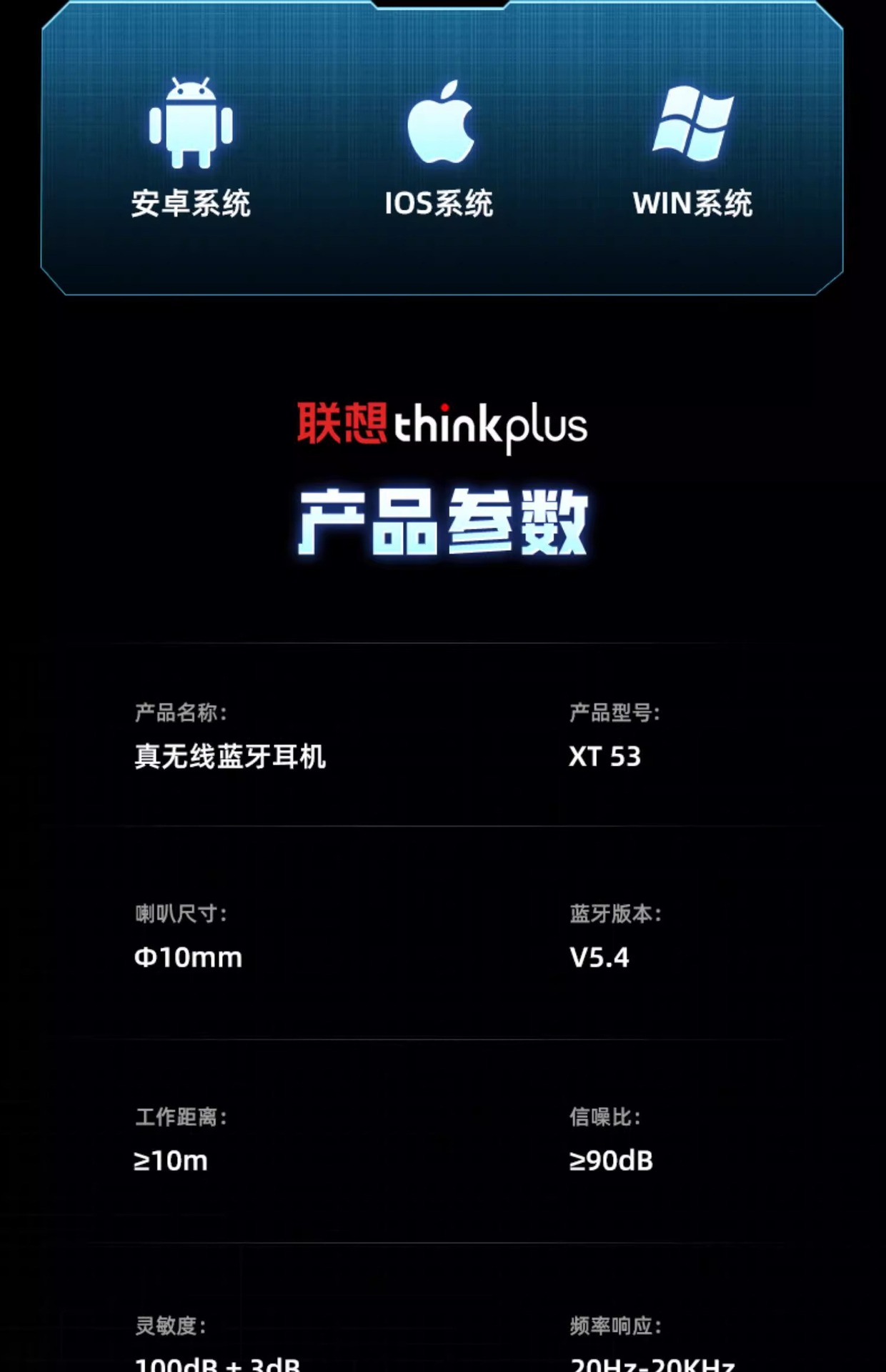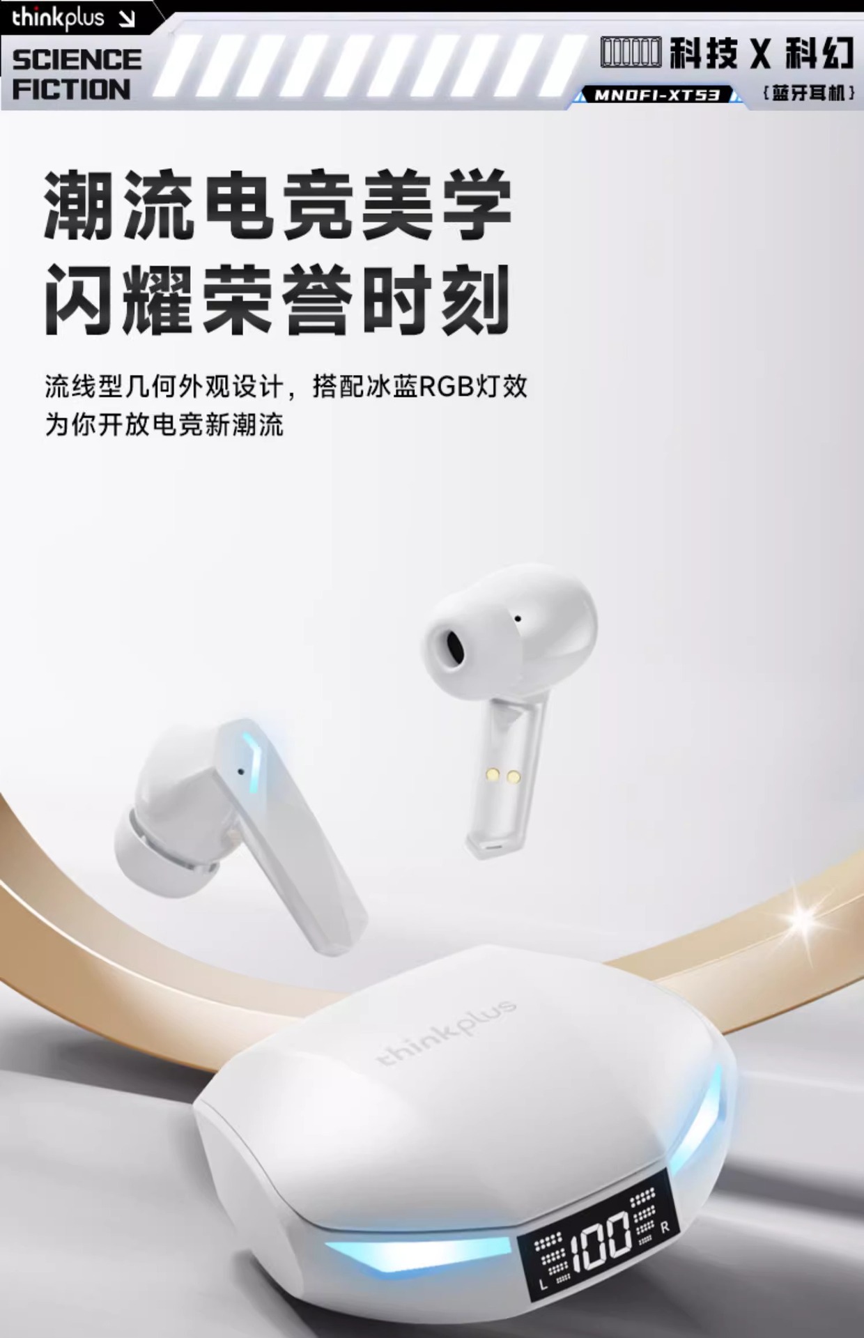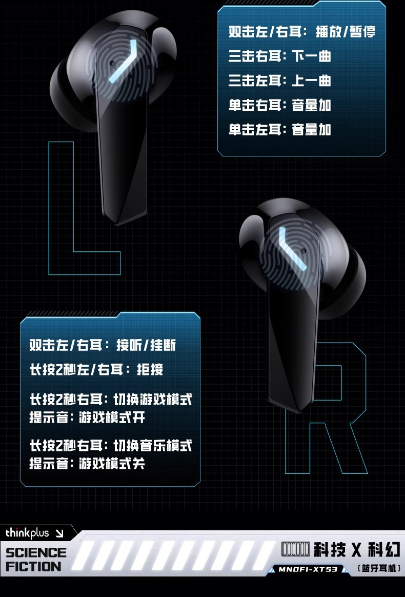 Lenovo 레노버 블루투스 헤드셋 XT53 이어폰형 초장기 배터리 수명 스포츠 소음 감소 e-스포츠 무선 헤드셋 적합