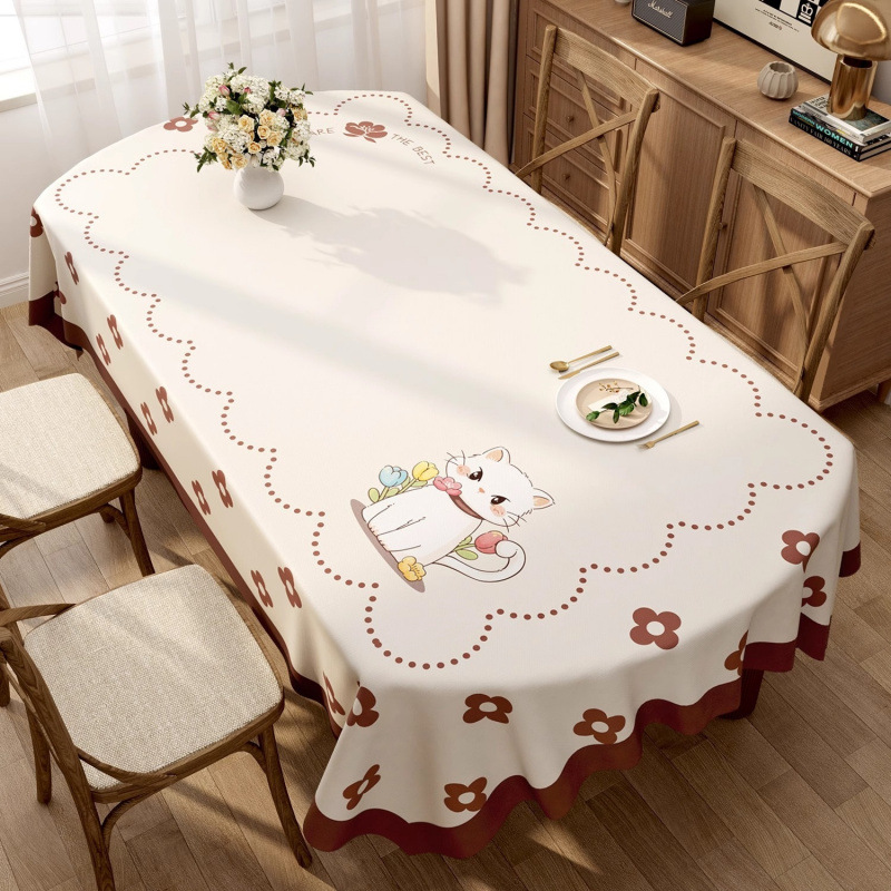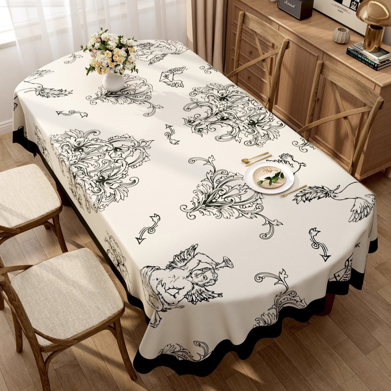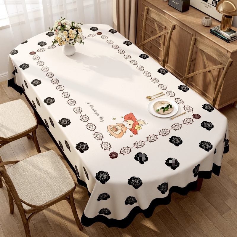 프랑스 타원형 식탁보 방수 및 내유성 노워시 화상 방지 PVC 식탁보 라이트 럭셔리 하이 엔드 커피 테이블 커버스토어 가기