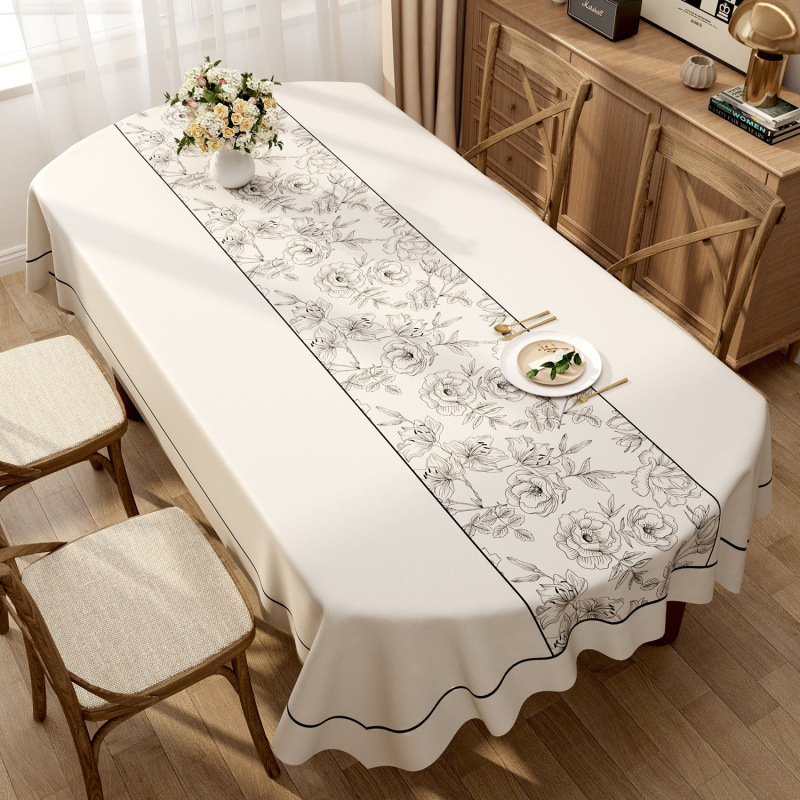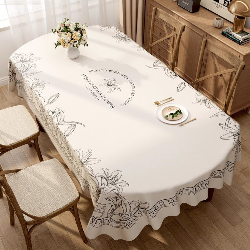 프랑스 타원형 식탁보 방수 및 내유성 노워시 화상 방지 PVC 식탁보 라이트 럭셔리 하이 엔드 커피 테이블 커버
