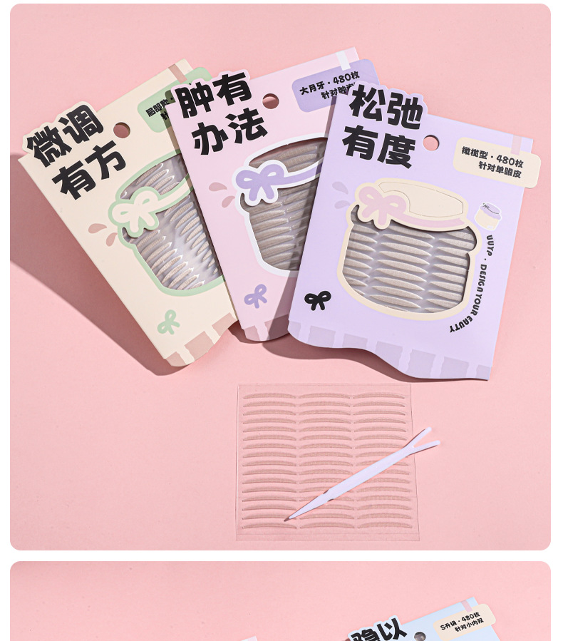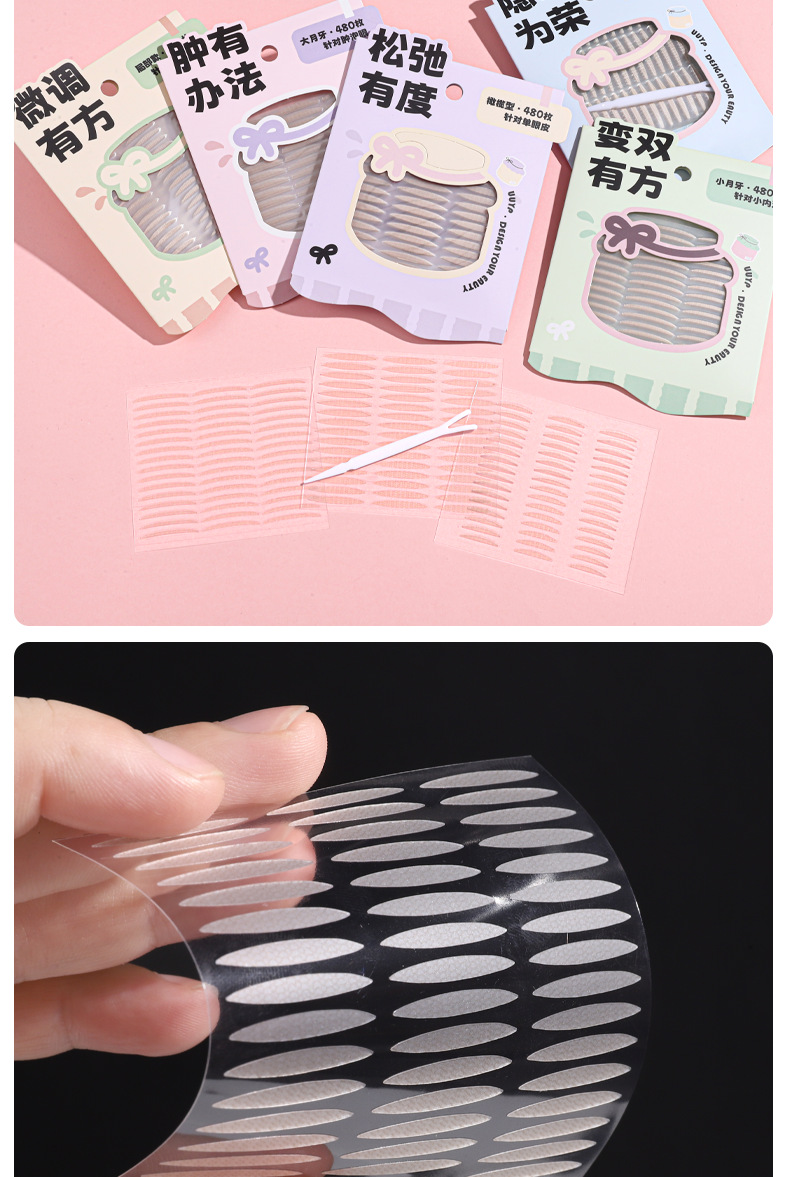 쌍꺼풀 패치 480개, 눈에 보이지 않는 자연스럽고 흔적이 없는 붓기 눈꺼풀 특수 레이스 양면 단면 남녀 공용 눈 미용 도구