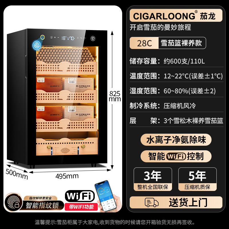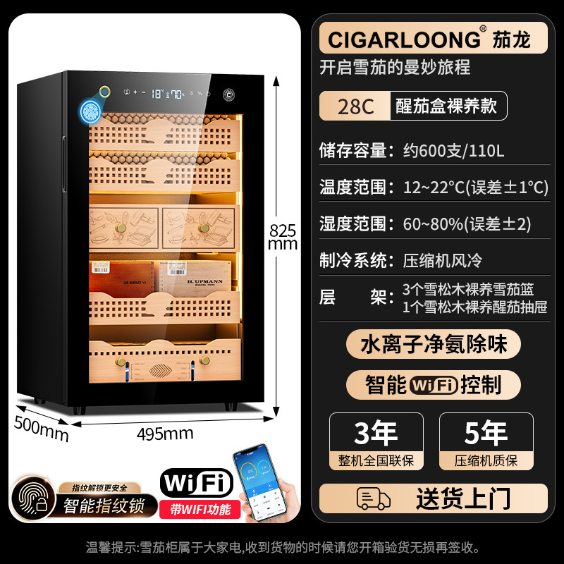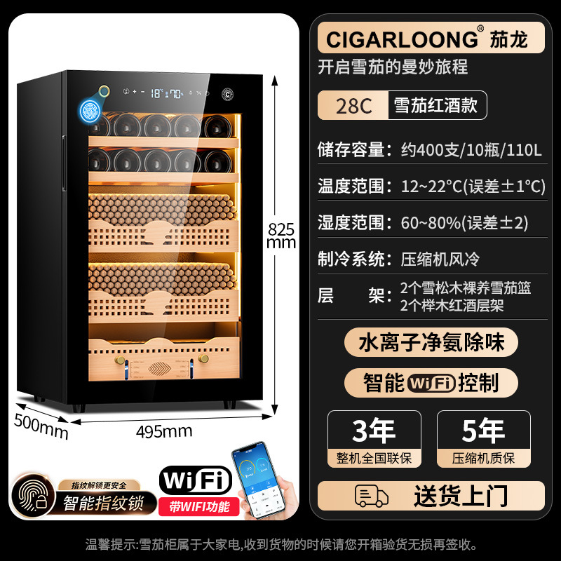 Jiale CL-28C 항온 및 항습 시가 캐비닛 지문 잠금 장치 스마트 WiFi 암모니아 순화 및 보습 시가 캐비닛 냉장 레드 와인 캐비닛