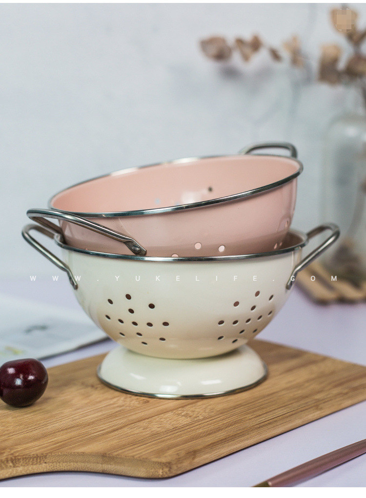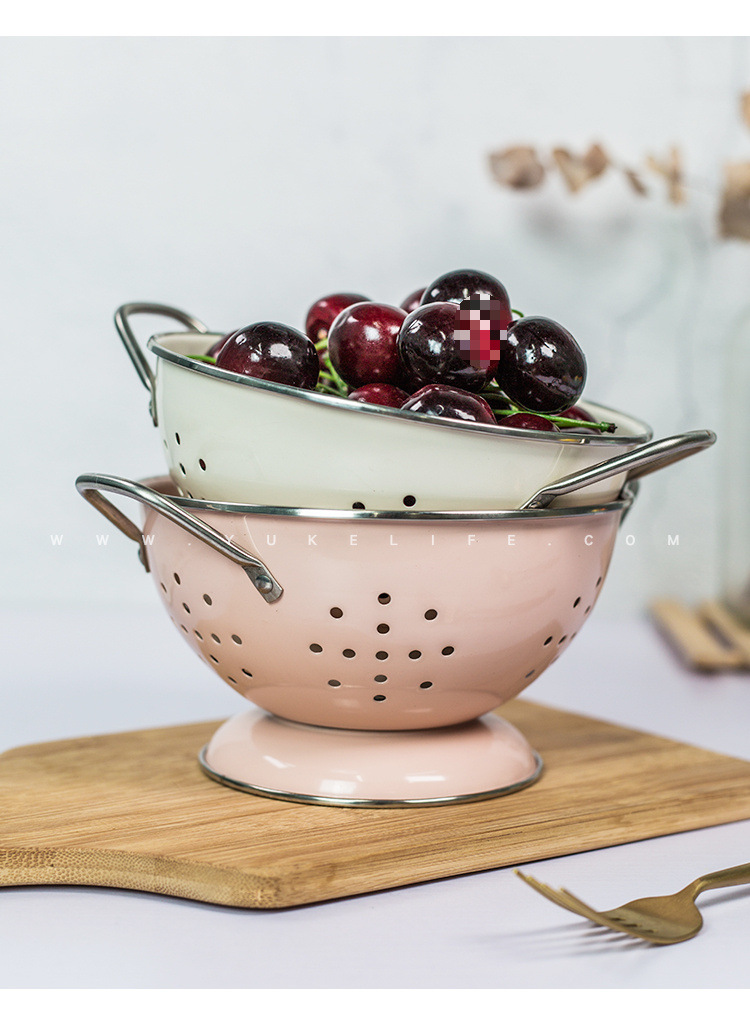 핑크색 북유럽 스타일 밀크 화이트 소형 대형 배수 이중 귀 그릇 과일 그릇 과일 접시 과일 바구니 녹 방지