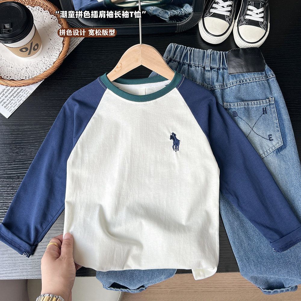 2025 새로운 가을 아동 의류 소년 흰색 소년 바닥 셔츠 티셔츠 탑 봄, 가을 도매 배송스토어 가기