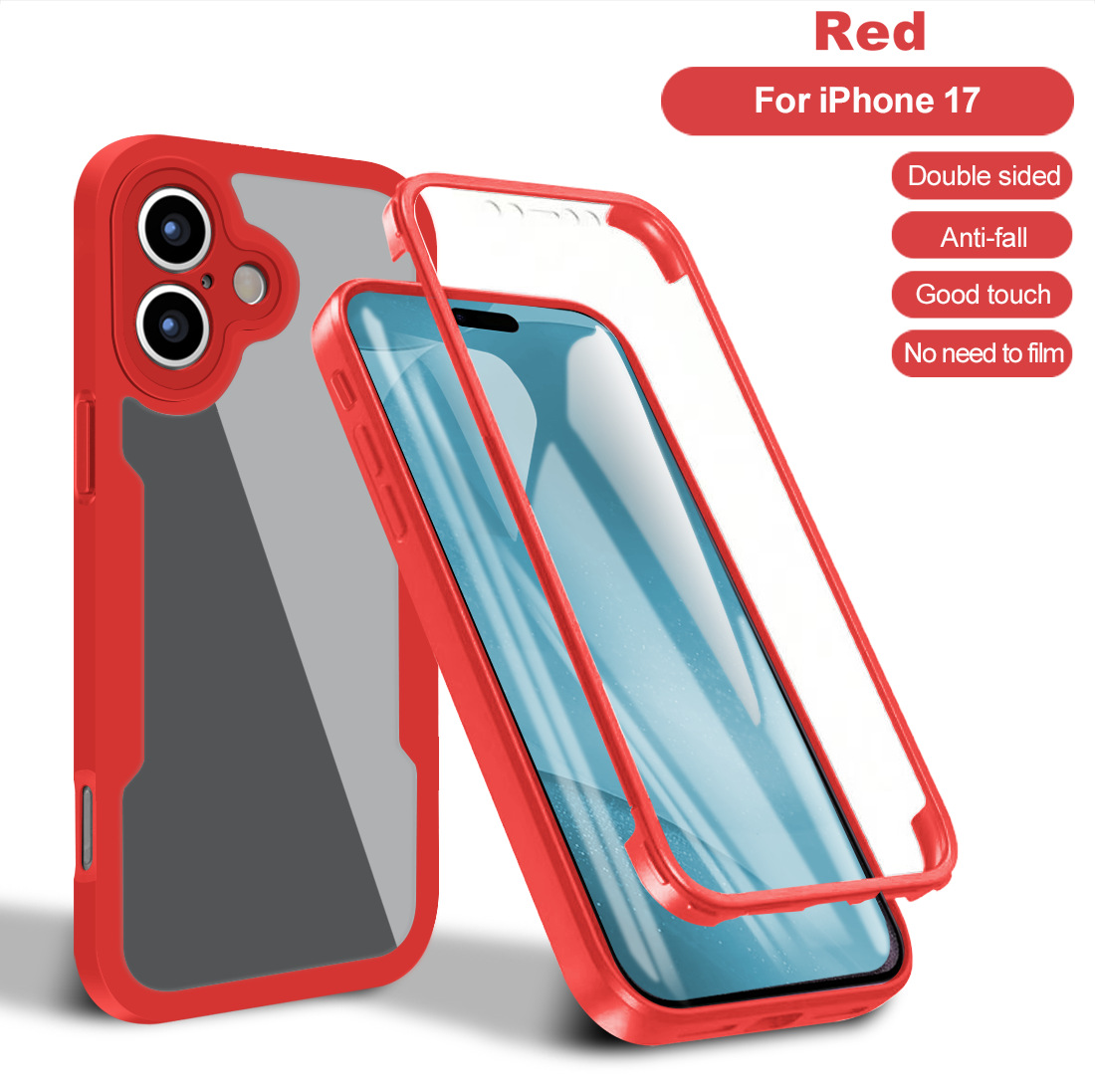 iphone17 휴대폰 케이스에 적합, 모든 항목을 포함하는 360 전면 및 후면 커버, 낙하 방지 쉘 필름 통합 iphone17air 보호 케이스