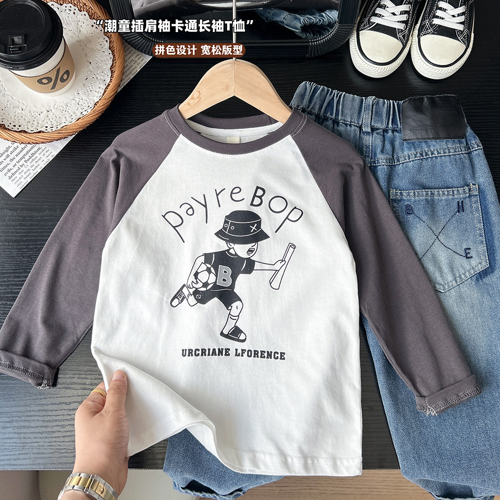 2025 새로운 가을 어린이 바닥 셔츠 긴 소매 소년 만화 흰색 긴 소매 티셔츠 도매 Dropshipping스토어 가기