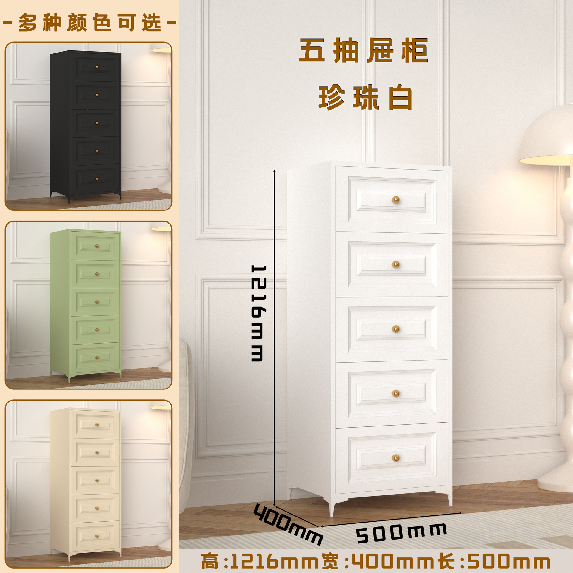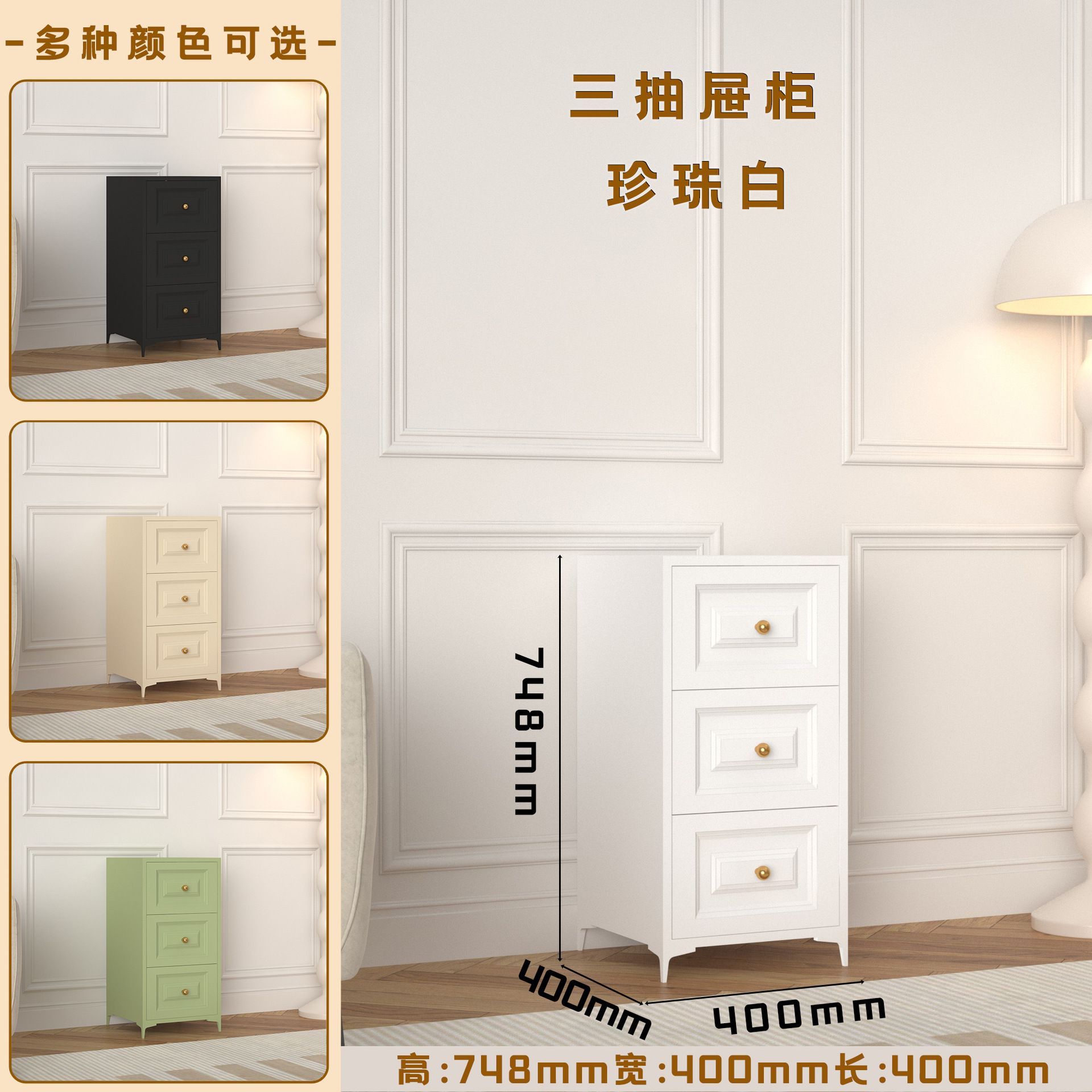 • 베이지색 2통 폭 40cm 플로어 스탠딩 모델에는 컬러 손잡이가 포함되어 있습니다.