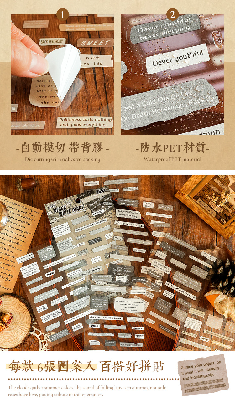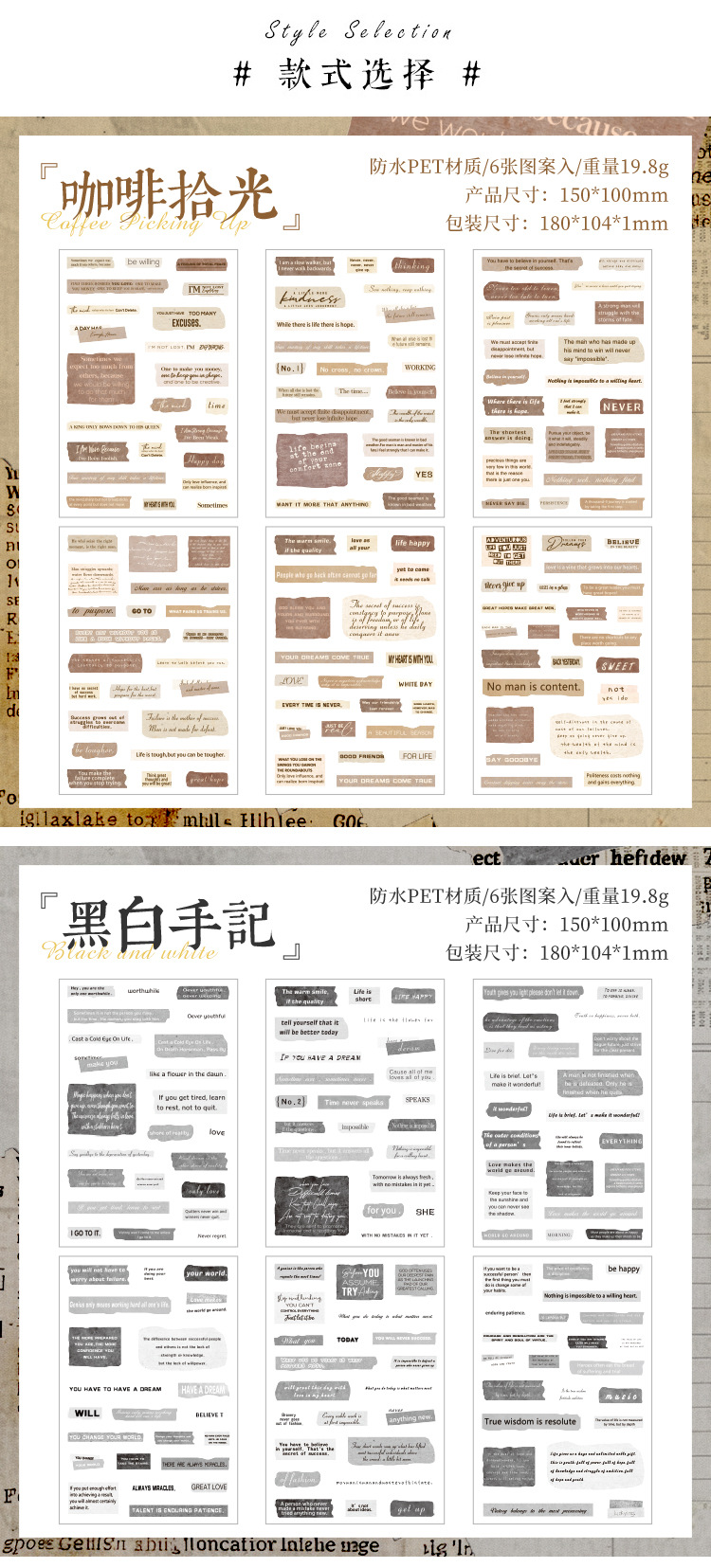 레트로 옛날 투명 애완 동물 방수 스티커 크로스 보더 영어 인용 DIY 핸드북 크리 에이 티브 장식 콜라주 스티커