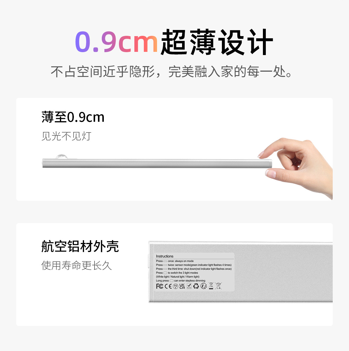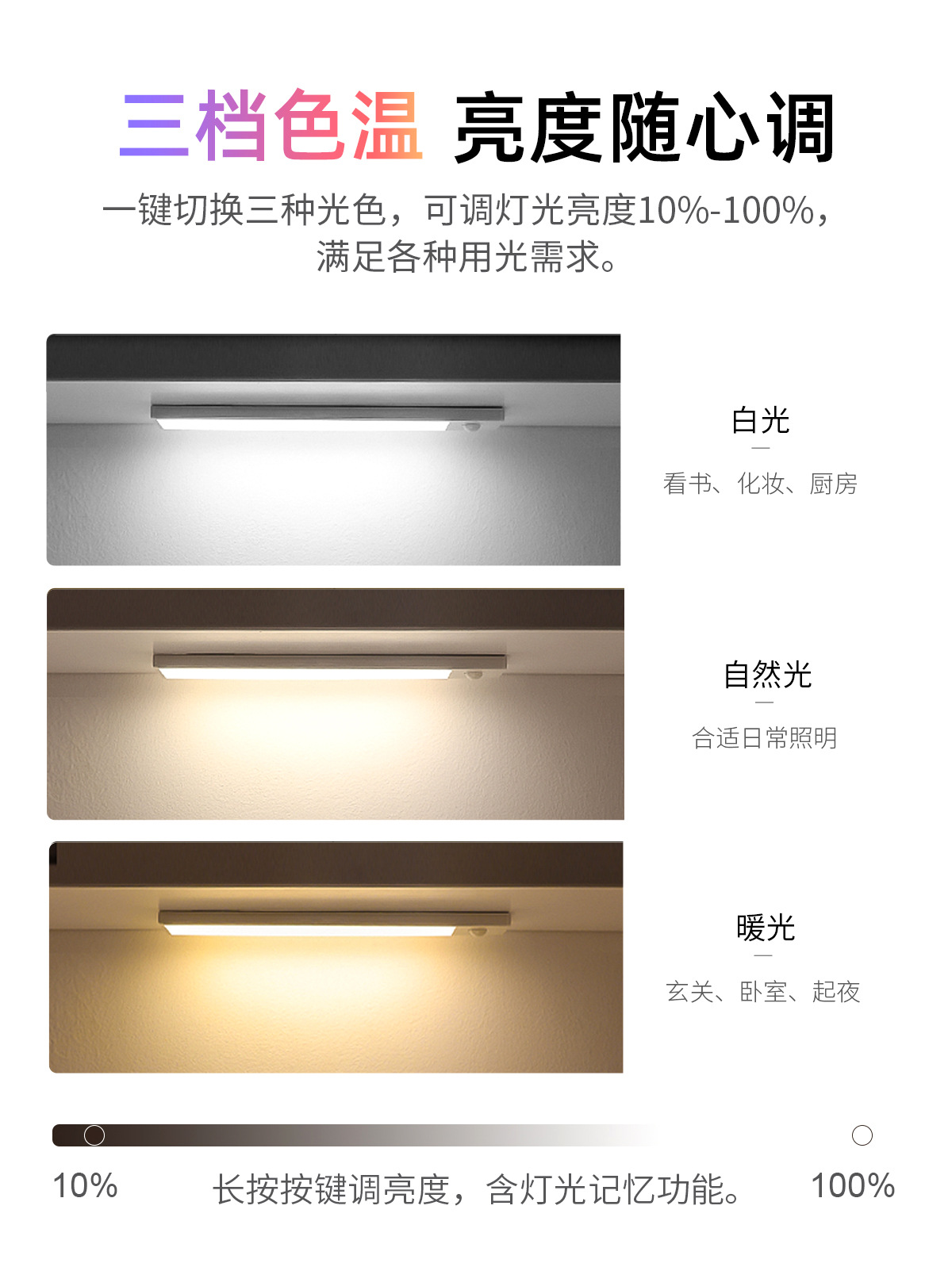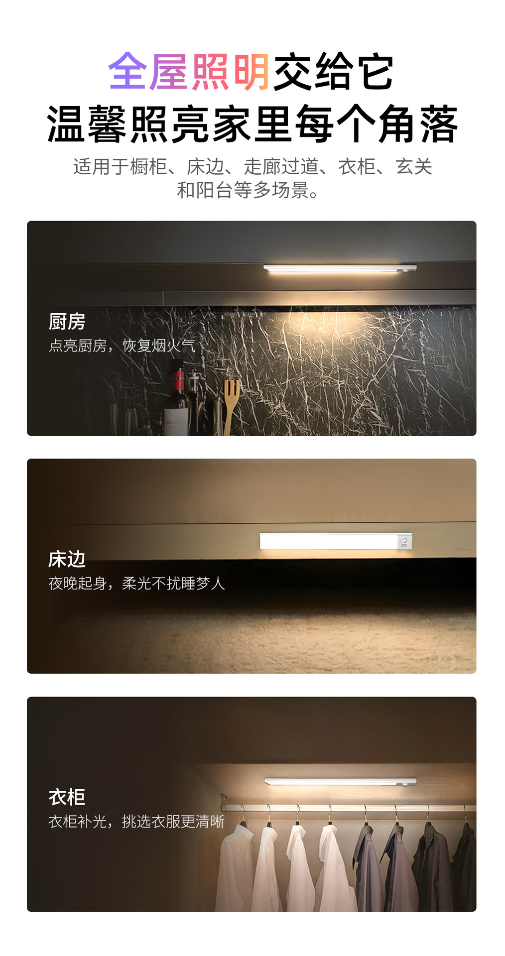 磁吸感应灯 感应灯人来即亮 衣柜灯