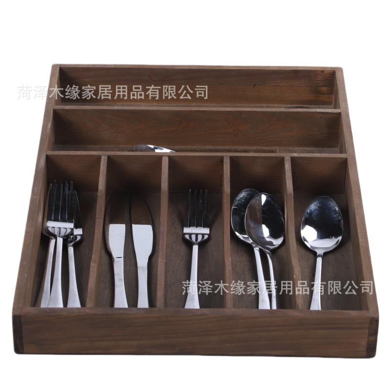 나무 주방 칼 보관 상자 칼과 포크 분할 정리 상자 서랍 식기 보관 상자 가정용 보관 상자스토어 가기
