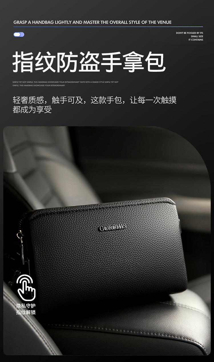 새로운 남성용 클러치 지문 잠금 장치 도난 방지 대용량 클러치 지갑 지갑 비즈니스 고급 남성용 가방