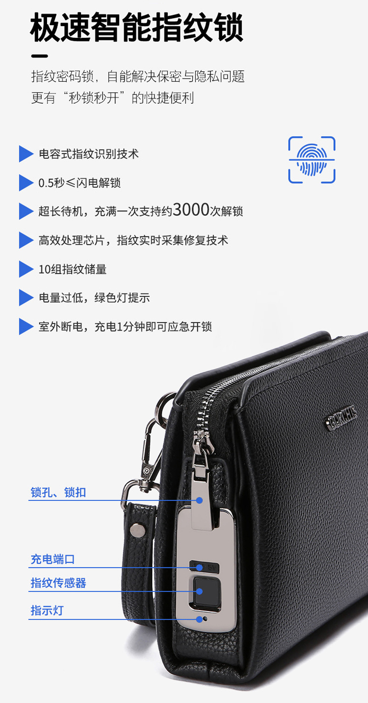 새로운 남성용 클러치 지문 잠금 장치 도난 방지 대용량 클러치 지갑 지갑 비즈니스 고급 남성용 가방스토어 가기