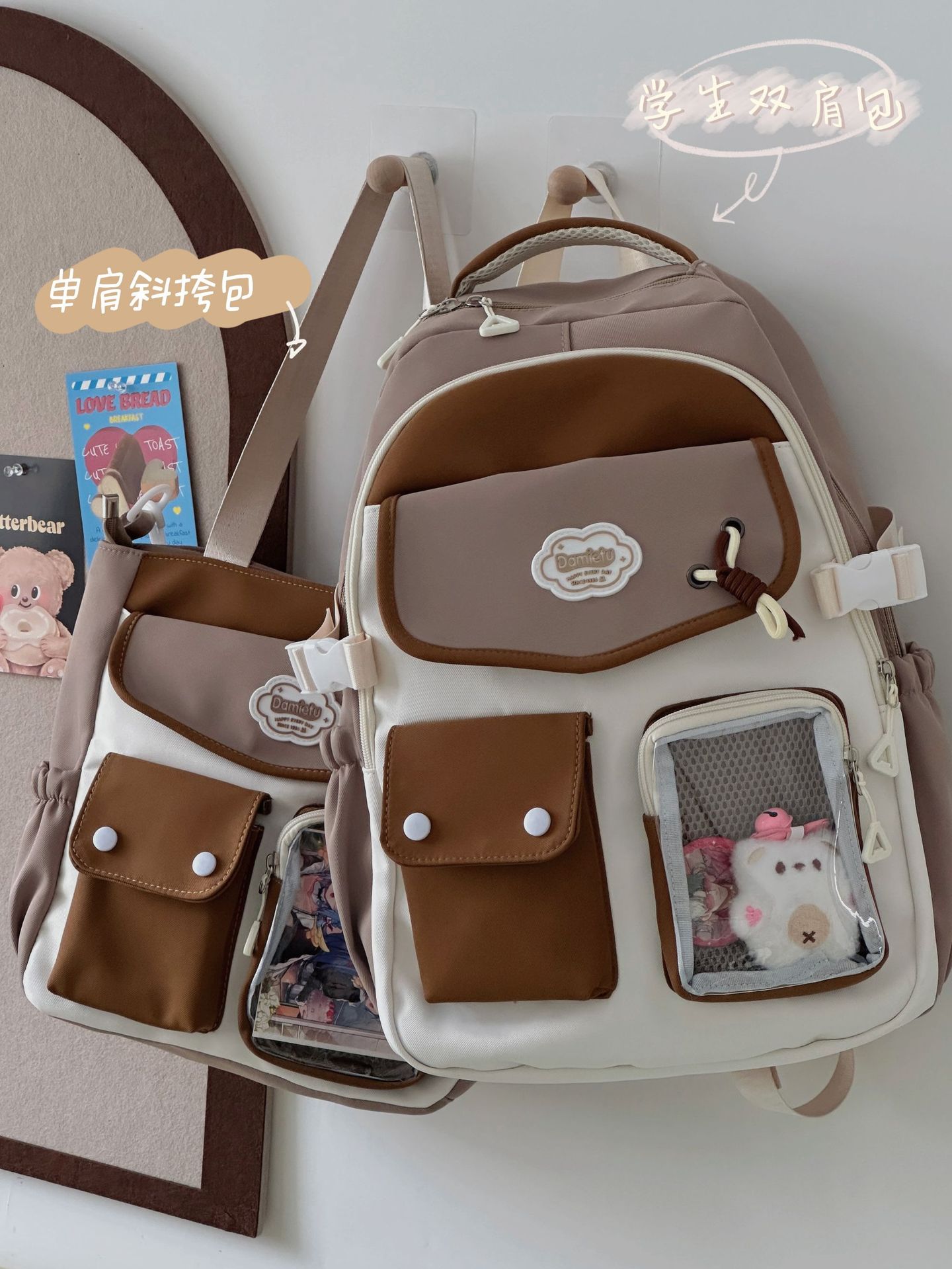 중고생 책가방 새로운 한국어 버전 ins 고급스럽고 상큼하고 달콤한 가방 대용량 배낭스토어 가기