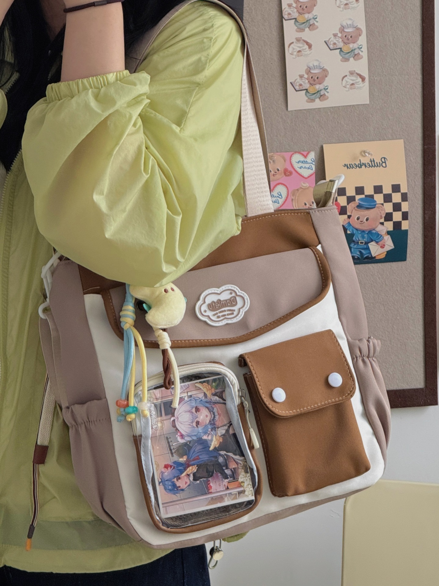 • 카키 숄더백 [카드 없음, 라운드 뱃지 없음, 펜던트 없음]