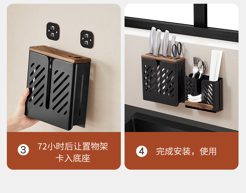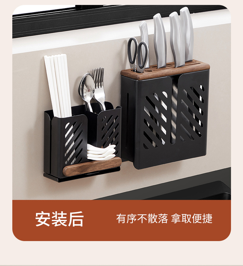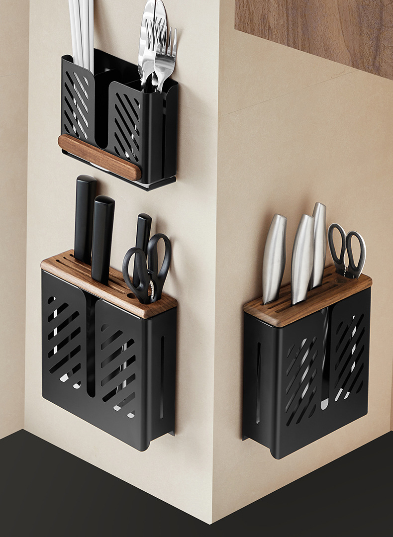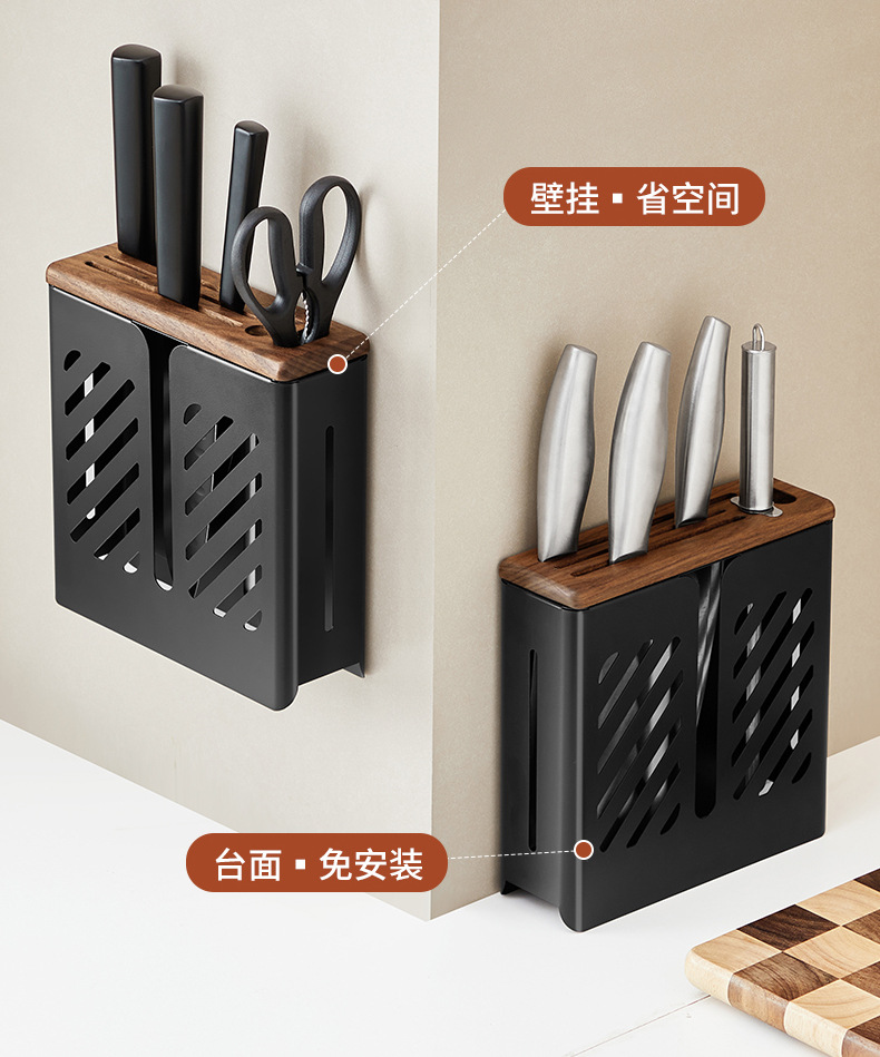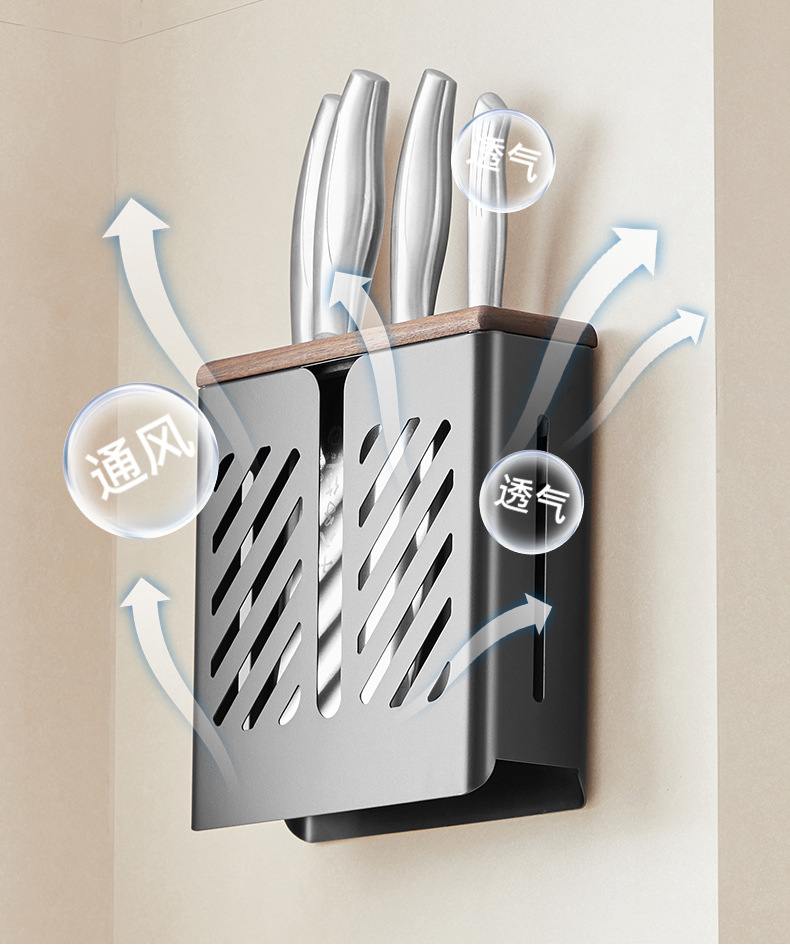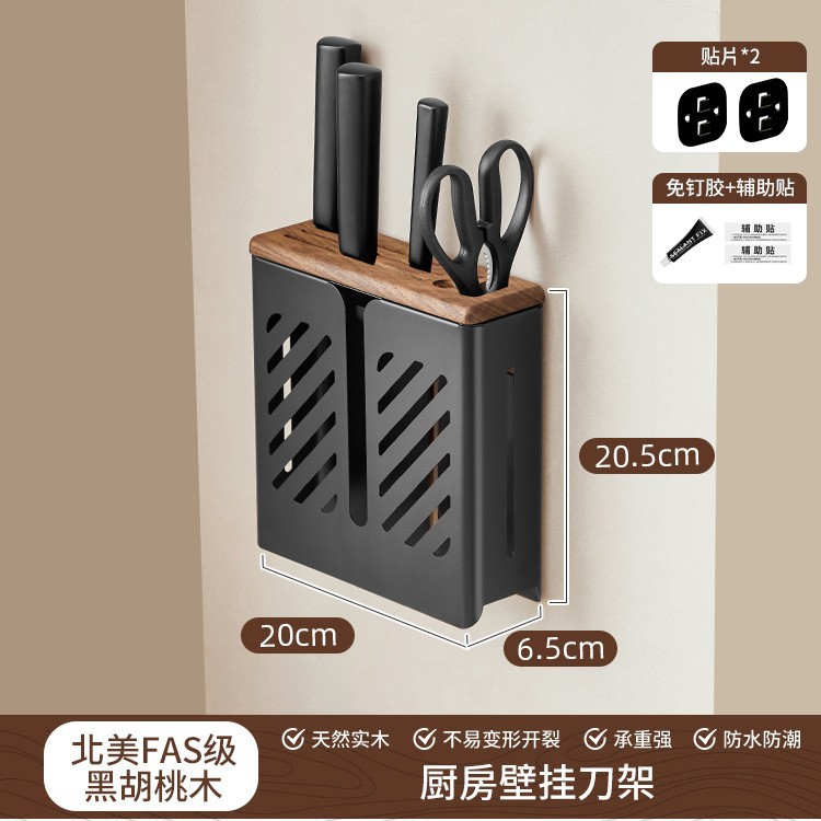 새로운 호두나무 주방 칼 홀더 벽걸이 형 펀치없는 벽 다기능 젓가락 보관함 집들이 선물