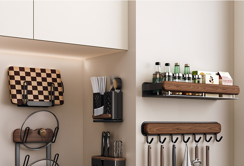 새로운 호두나무 주방 칼 홀더 벽걸이 형 펀치없는 벽 다기능 젓가락 보관함 집들이 선물스토어 가기